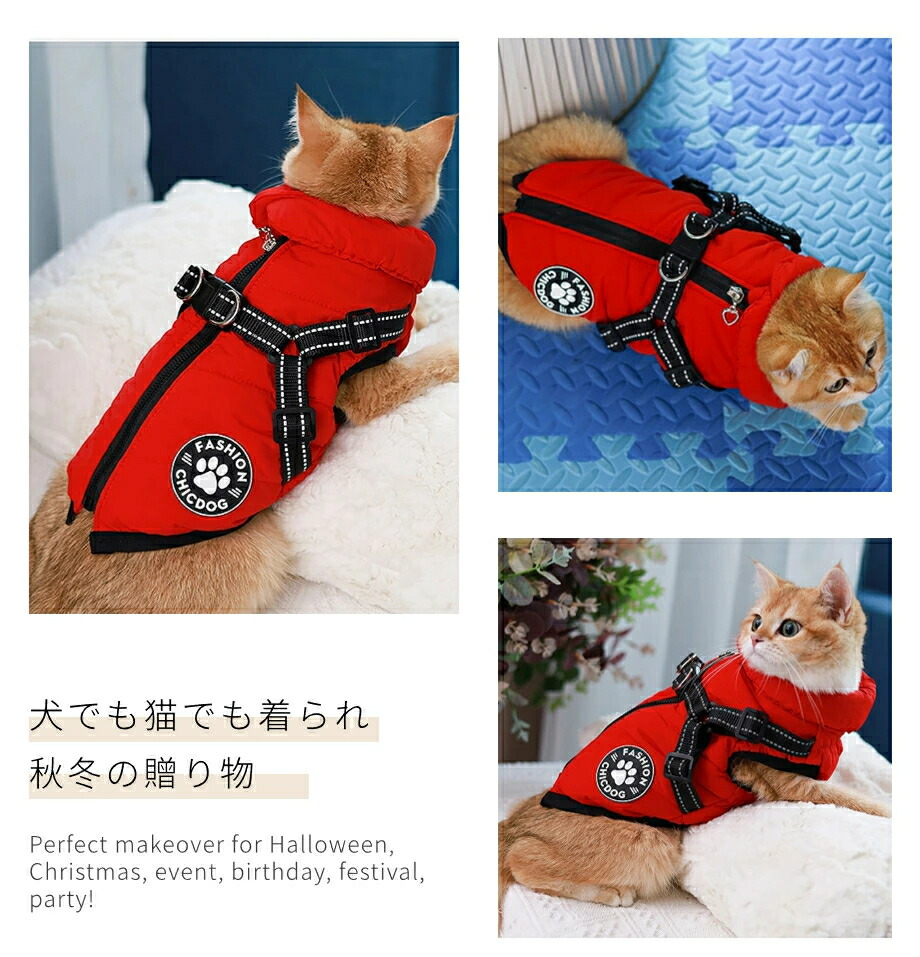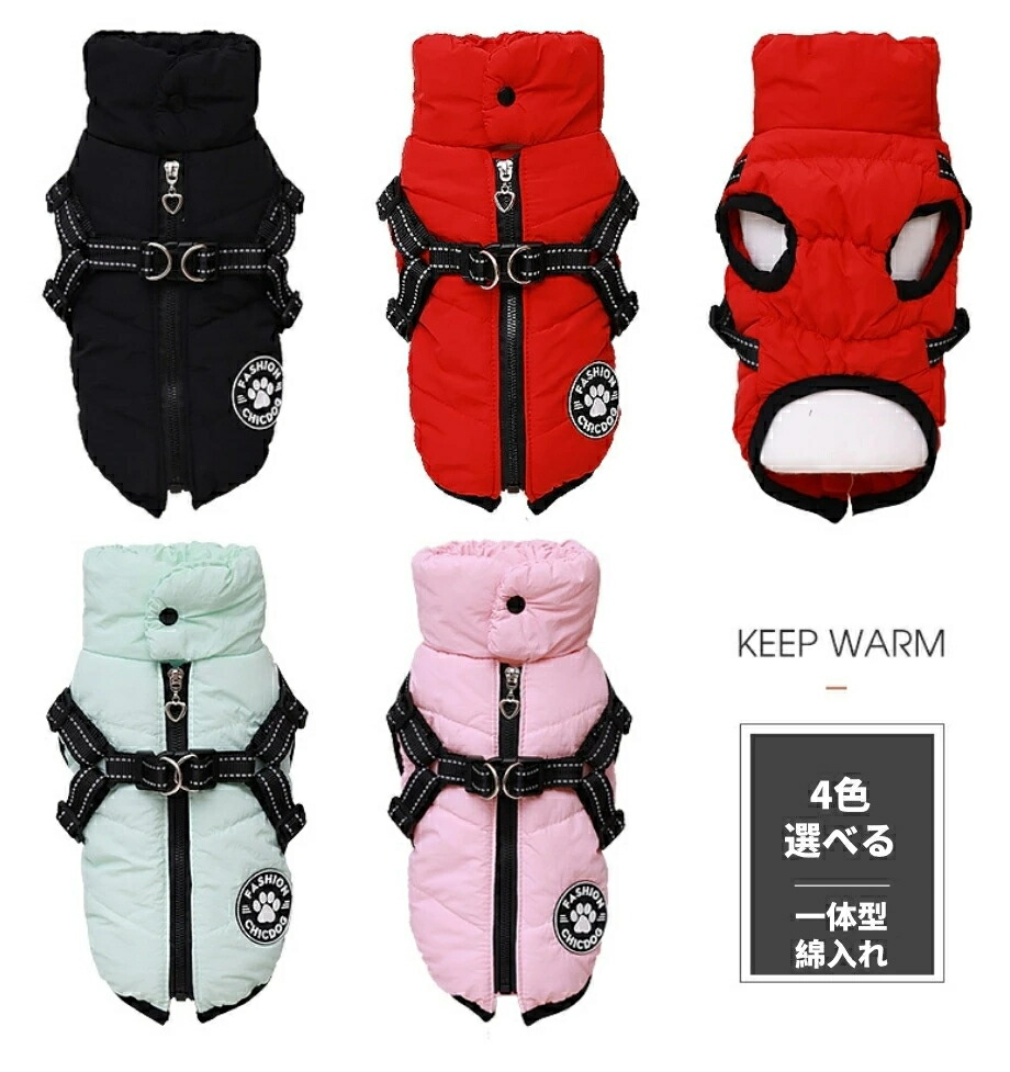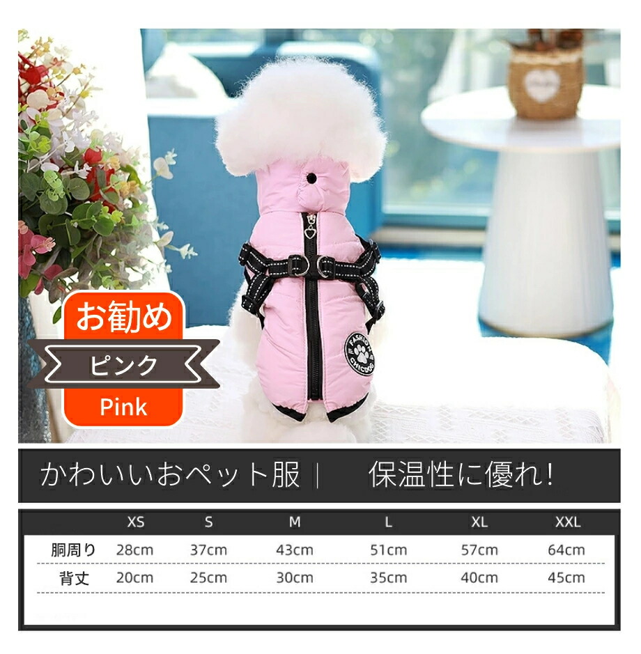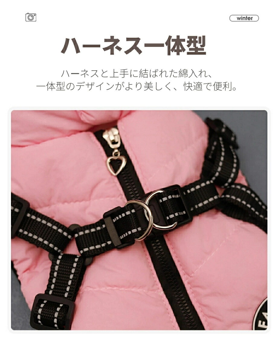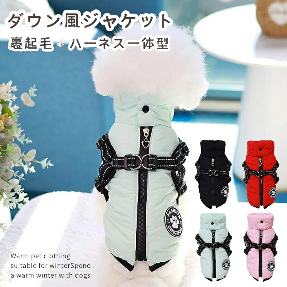 犬 服 ダウン風 ジャケット ベスト ドッグウェア 犬の服 犬用洋服 袖なし ハーネス一体型 ペット 背中開き ファスナー ペット服 ウェア 洋服 防寒 ボアベスト 犬服 猫 裏起毛 あったか 防寒着