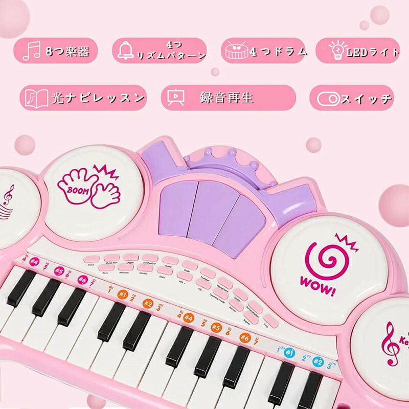 キッズ 可愛いピアノおもちゃ 電子ミニピアノ 音楽おもちゃ キーボード ミニキーボード 音楽玩具 子供ピアノ オモチャのピアノ 光ナビレッスン 知育玩具 誕生日 子供の日 鯉のぼり プレゼント 多機能