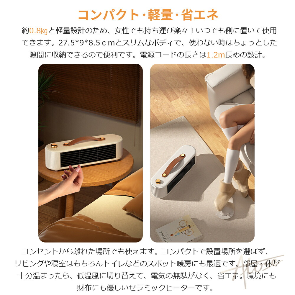 2023年冬の新品、スリムなサイズ感で場所が制限されていても、省スペースでコーナーに収納できます。スイッチを入れば僅か2秒で温風が出ます。膝元や足元でも全身温める可能です。