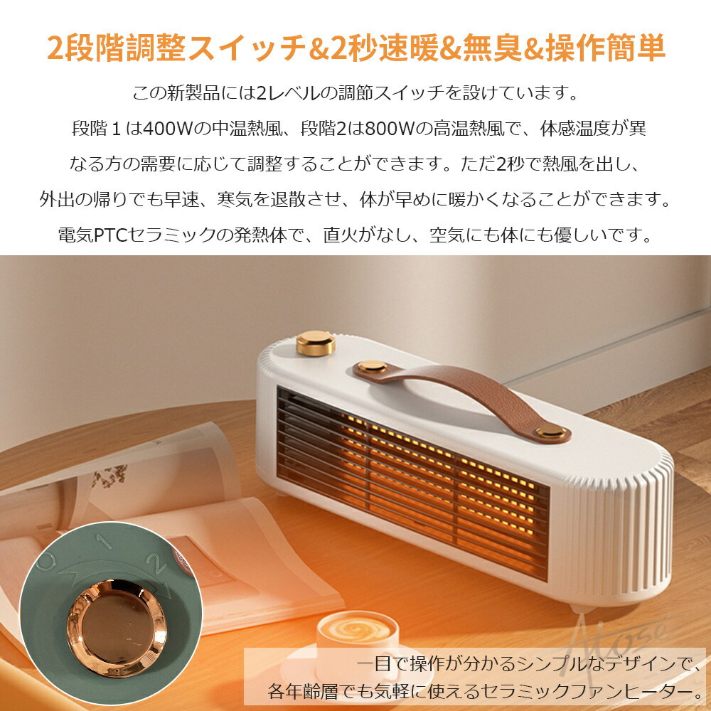 セラミックヒーター ヒーター 小型 卓上 速暖 脱衣場ヒーター 足元ヒーター 2段階切替 取っ手付き 電気ファンヒーター コンパクト 暖房器具 電気ストーブ 扇風機 おしゃれ 足元暖房 冷え性改善 脱