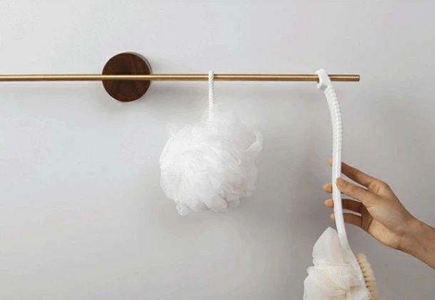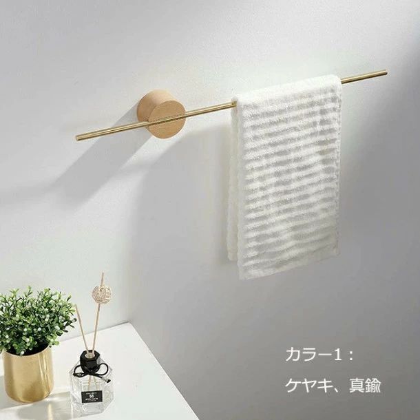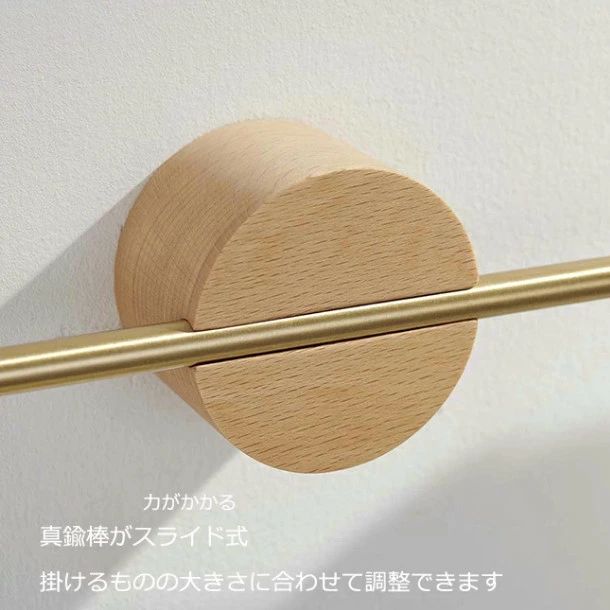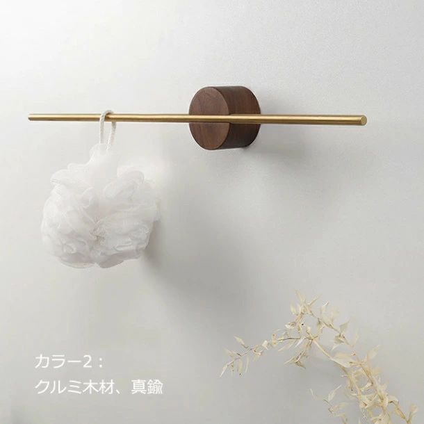 タオル掛け 洗面所 壁 木製 真鍮棒