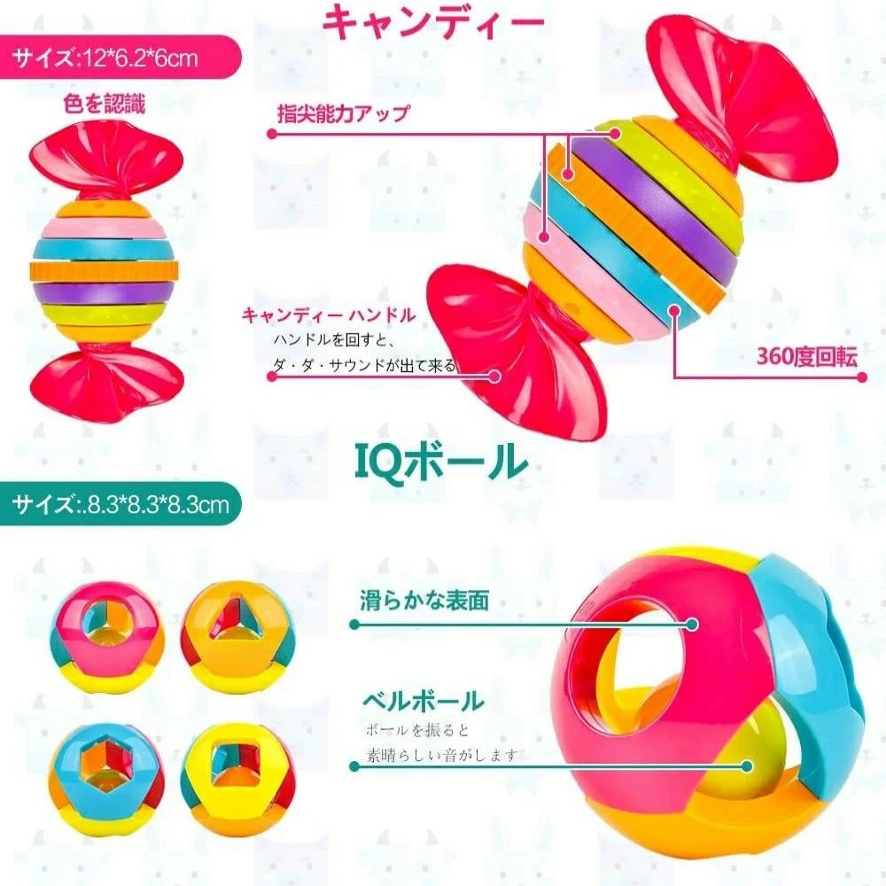 【赤ちゃんのおもちゃとしてお勧め】赤ちゃんのおもちゃ10点セット。握るのが難しい小さな赤ちゃんの手でも握りやすく作られているので、握って確かめたり、ボールのように投げたりと、ほかにも遊び方はいろいろ。0歳(6か月ころ)から2歳ころまで長く遊べる赤ちゃんのおもちゃです。赤ちゃんが楽しく思う存分遊べます。