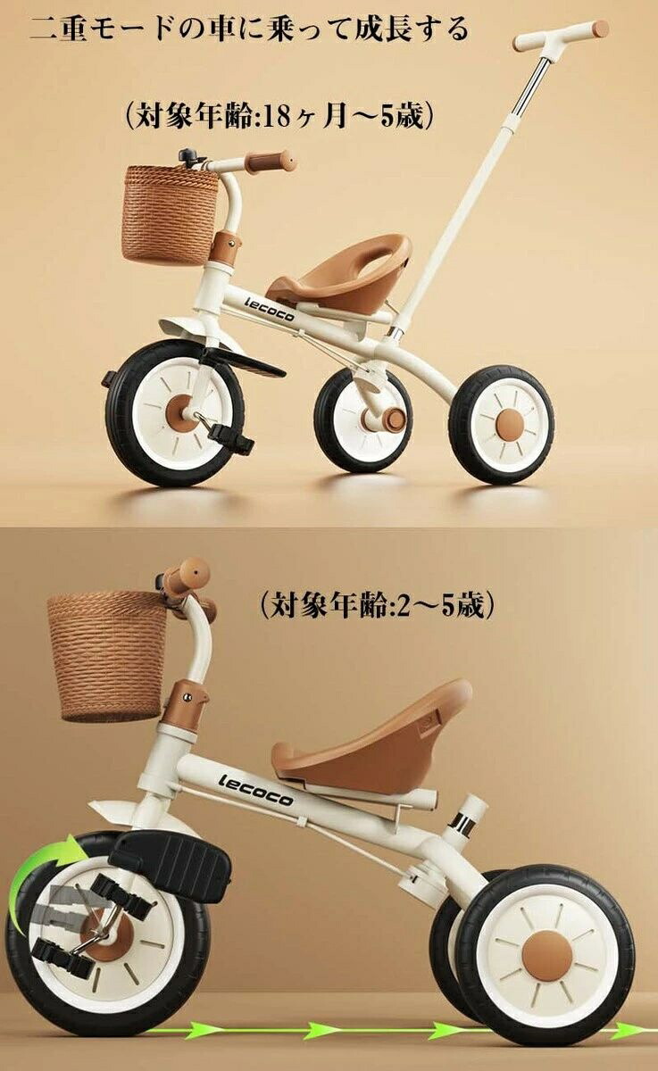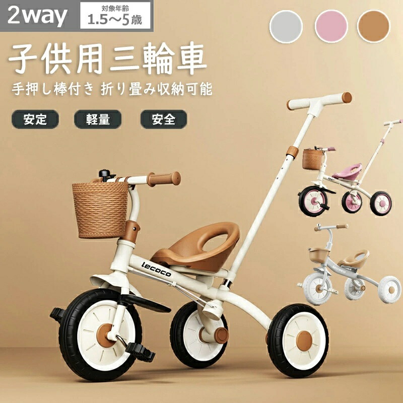 三輪車 おしゃれ 折りたたみ かじとり 安全 押し棒付き 手押しおもちゃ 乗用玩具 三輪車 三輪車