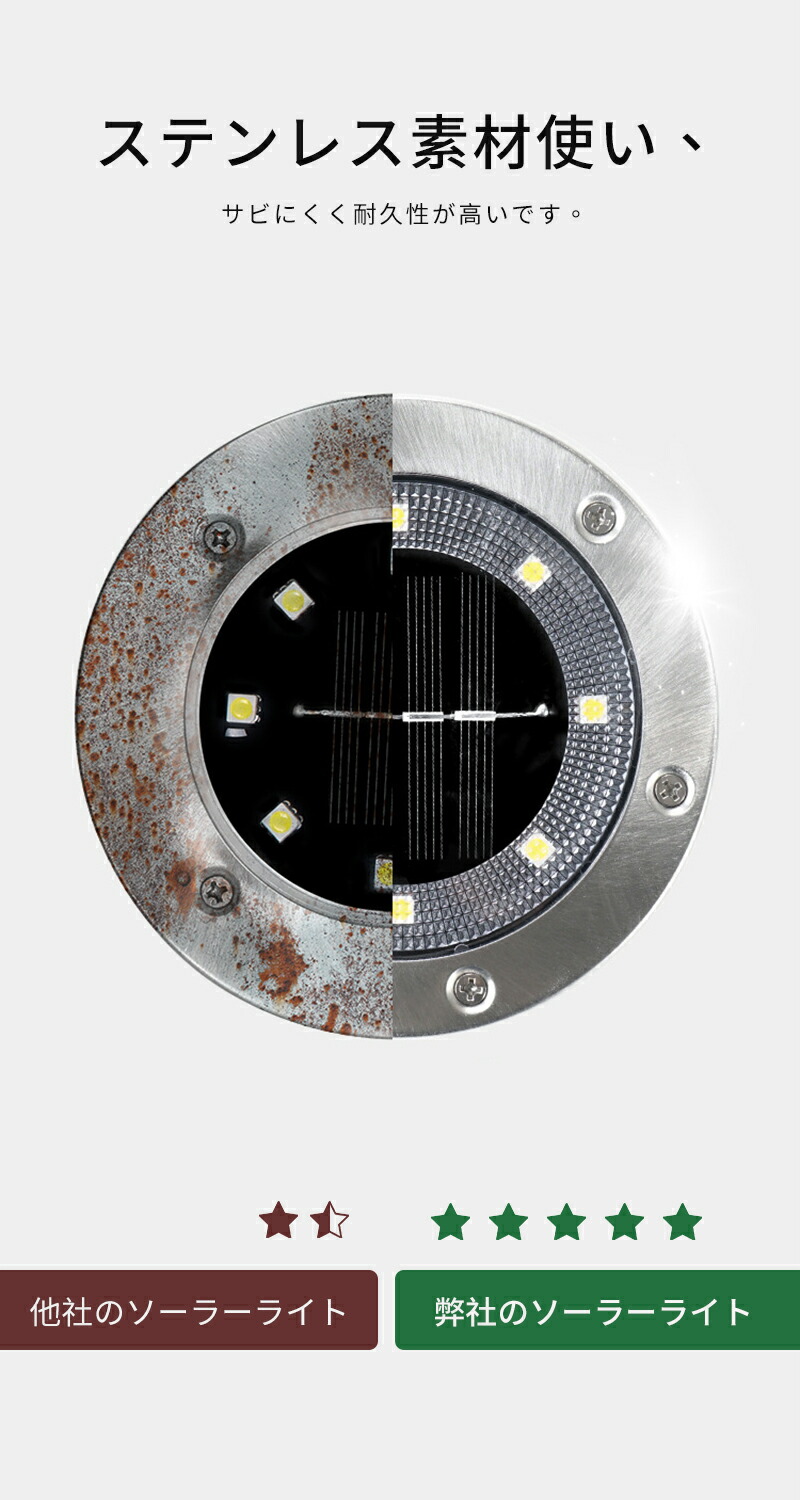 ■商品名:ソーラーライト 8LED 埋め込み型(4個セット)【solar-garden】