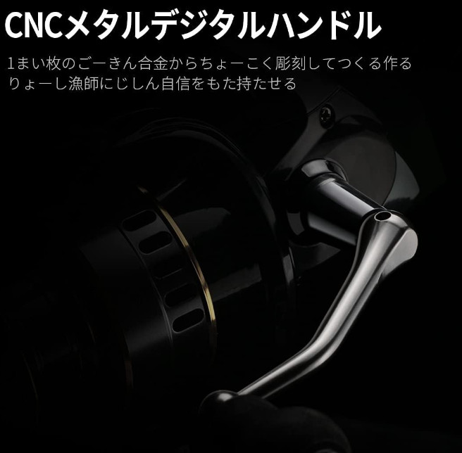 ●耐用●高強度CNC加工された鋼性素材アルミ合金製のハンドルとスプールは一体成型し、より太めのステンレスベイルアーム、金属ギア、銅製主軸、クロムメッキのラインローラー、ステンレス製ボールベアリングと高剛性で耐衝撃の複合材料のフレームなどは新型ボディを成し、より高耐久!全金属で防水機能つき、陸釣りに限らず、船釣り、海釣りにも適する!