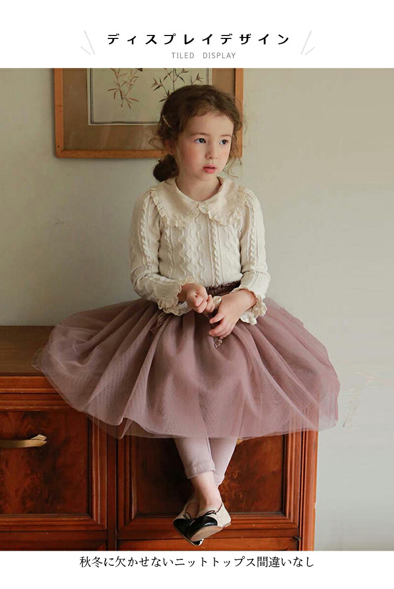 ニットセーター 子供服 女の子 セーター キッズセーター キッズトップス 秋トップス アランニット 丸襟 ラウンドカラー フリル 春秋 秋冬 子ども 可愛い 甘い 清楚 トップス おしゃれ 春秋 秋新