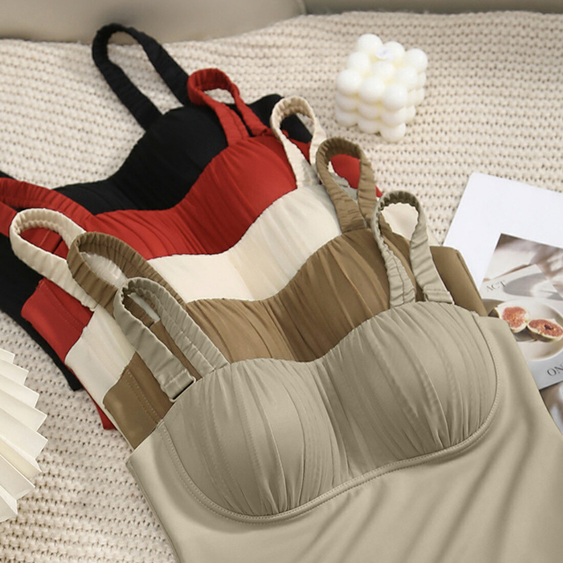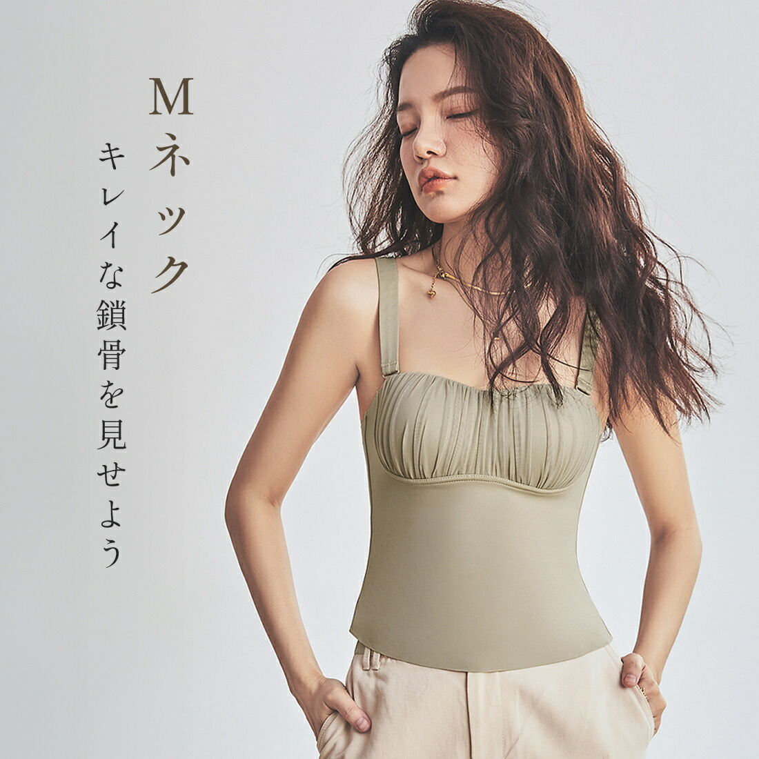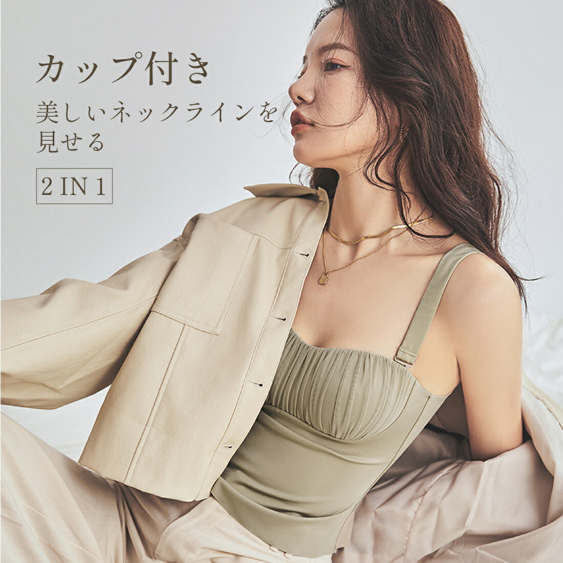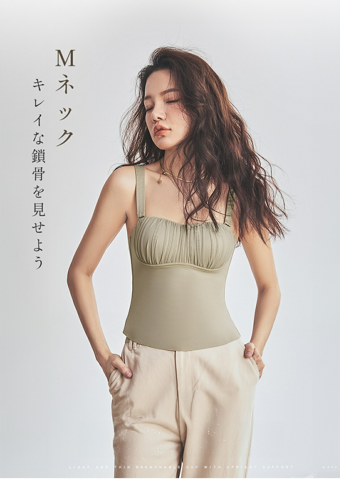 プリーツ カップ付き キャミソール ユニークなプリーツバスト&ストラップ、エレガントな女性らしさを作り出す