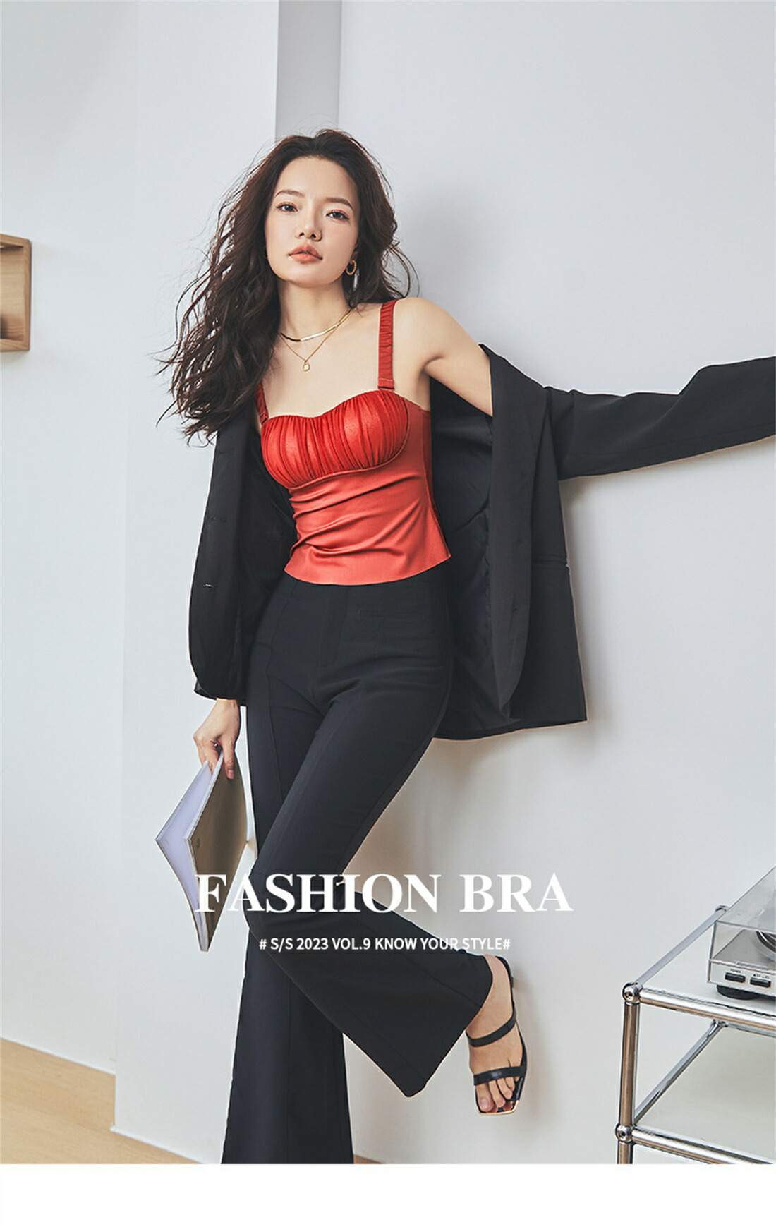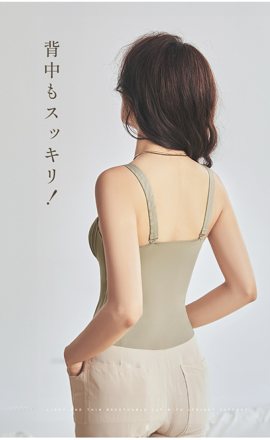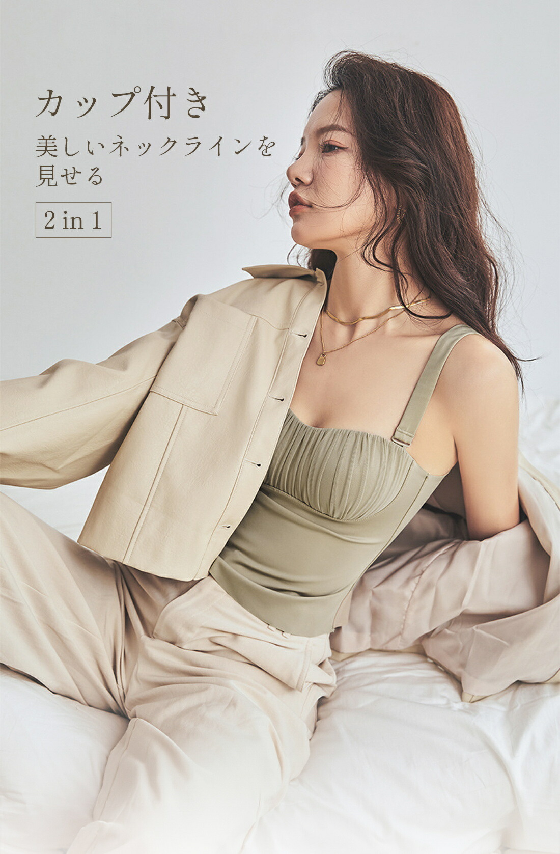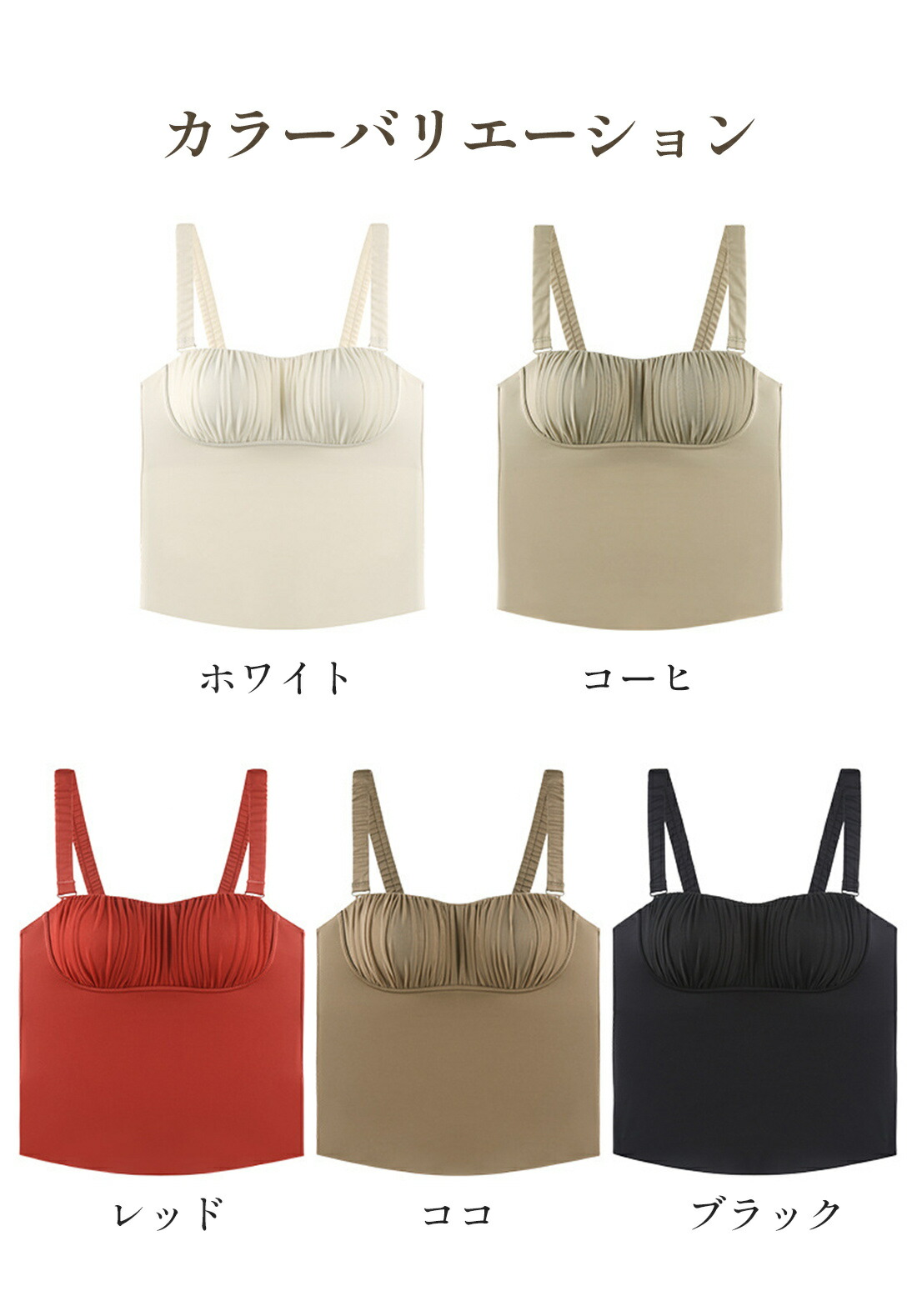 プリーツ カップ付き キャミソール ユニークなプリーツバスト&ストラップ、エレガントな女性らしさを作り出す