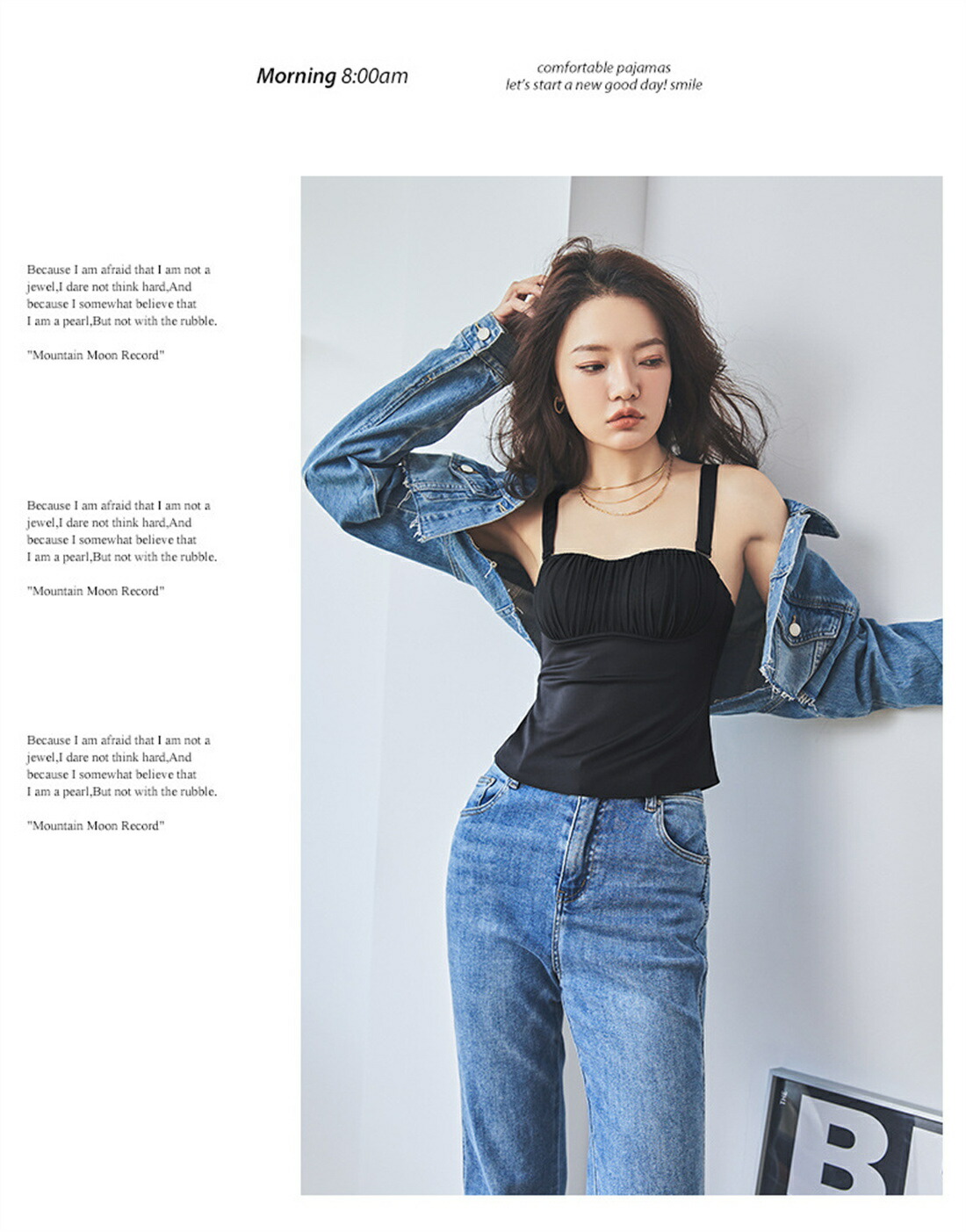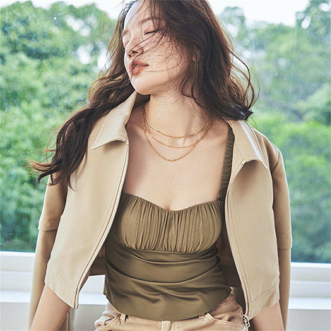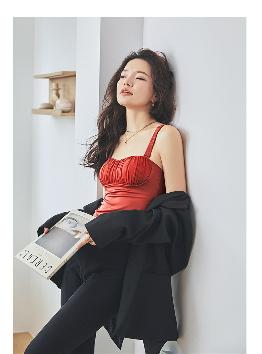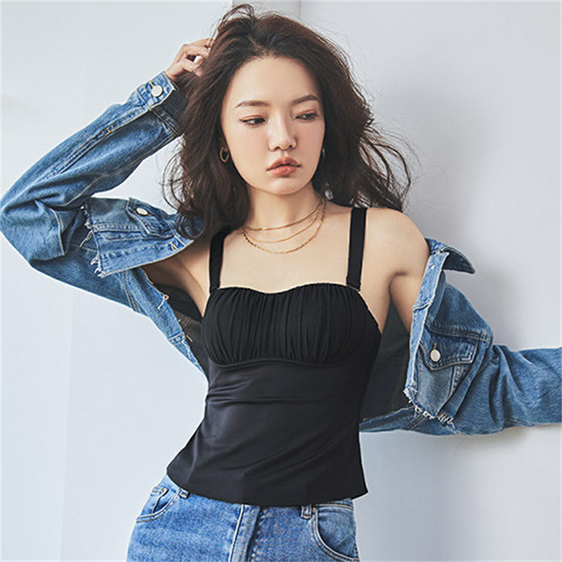 プリーツ カップ付き キャミソール ユニークなプリーツバスト&ストラップ、エレガントな女性らしさを作り出す