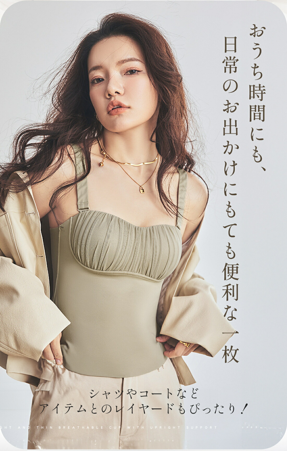 やわらかな肌ざわりで、おうち時間にも、日常のお出かけにも、インナーとしても便利なカップ付きインナーです。
