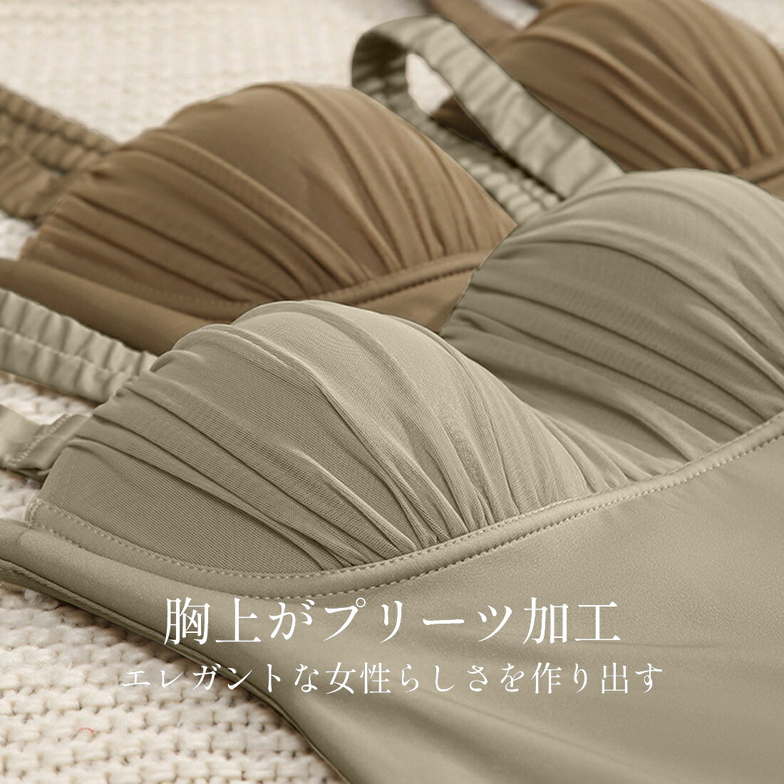 胸上がプリーツ加工したなのでエレガントな女性らしさを作り出します。取り外し可能ストラップもユニークなプリーツデザイン。