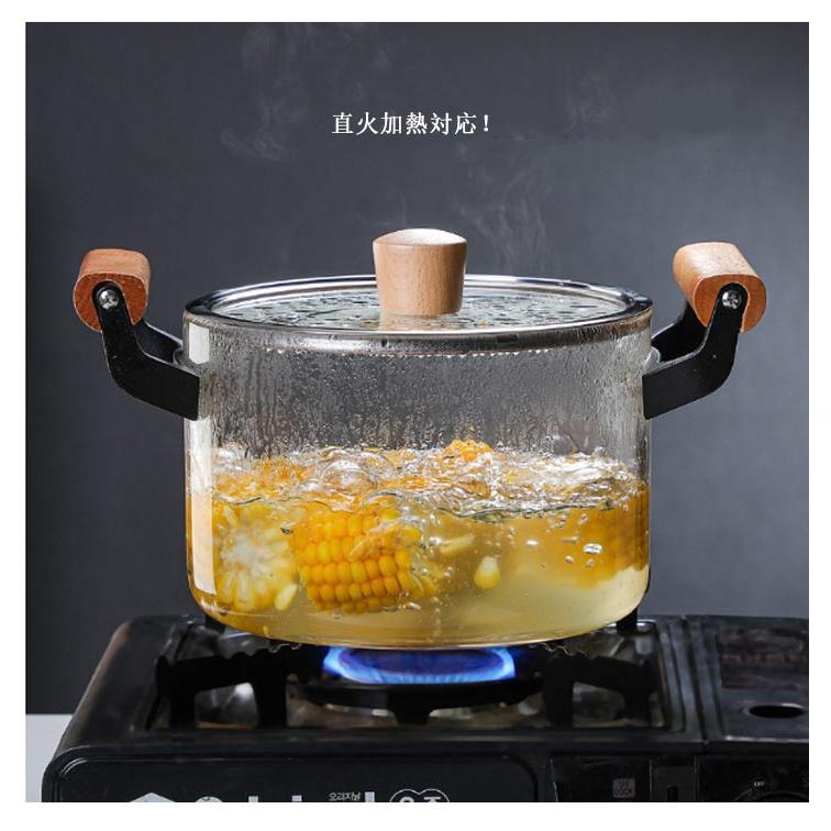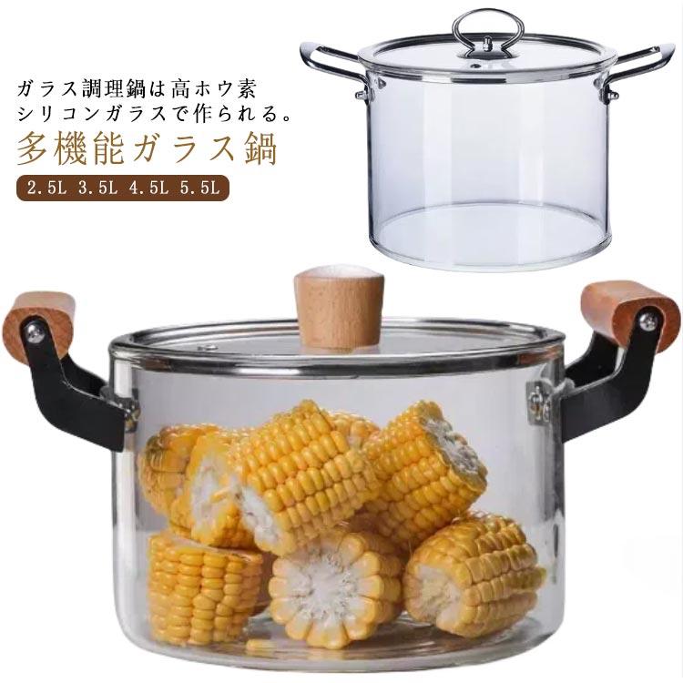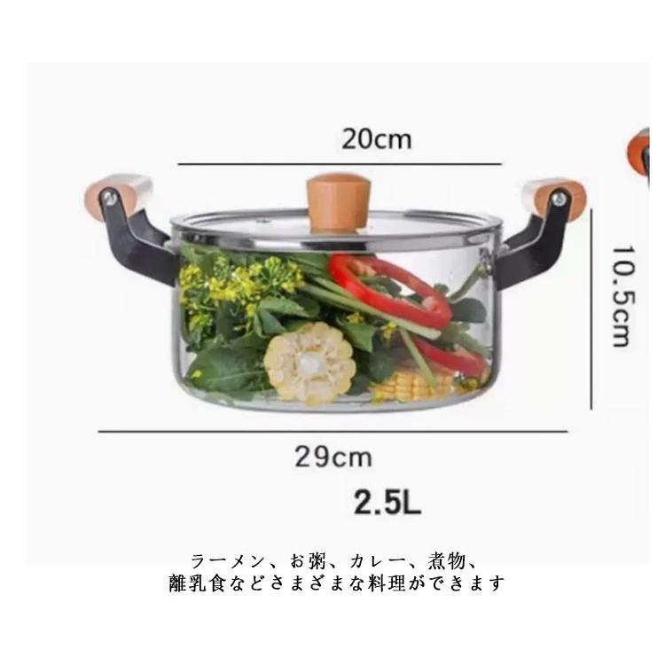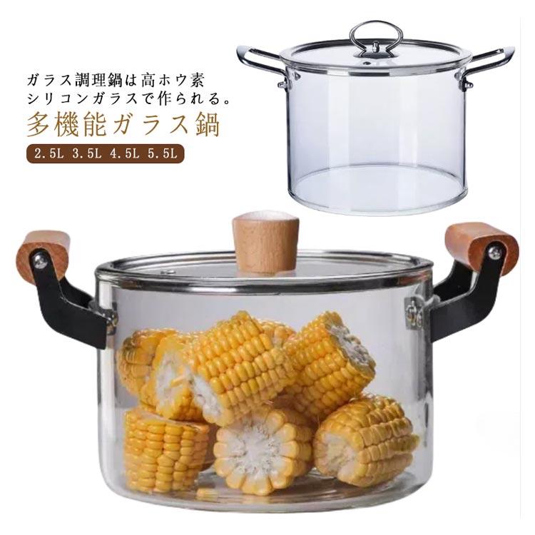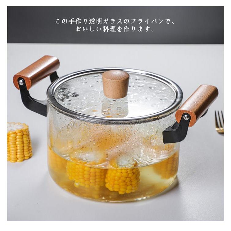 ガラス鍋 深型 両手鍋 ガラス鍋蓋付き ガラス調理器具 スープ鍋キッチン用品 食器 調理器具 鍋 フライパン 鍋 両手鍋