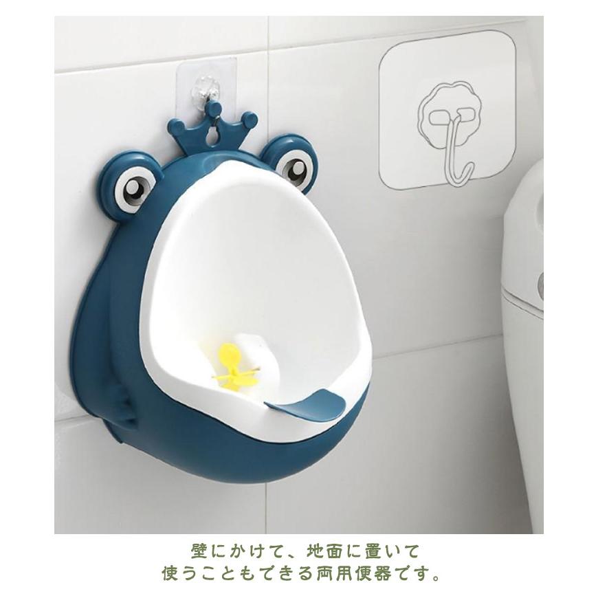 【デザイン】お子様がひとりで自然におしっこができるよう楽しみながらトイレトレーニングができる、カエル型で遊び心満載の男の子用練習トイレ(補助便座、小便器)です。