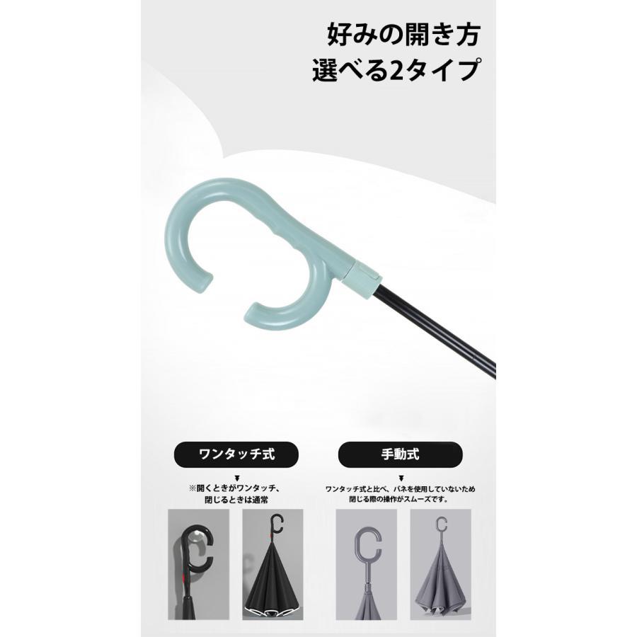 【逆さ傘】【2層構造 自立式 晴雨兼用】【大きめ 幅108cm】(送料無料)UVカット 紫外線遮断 遮熱 遮光 遮熱効果 遮光性 2重構造 晴雨両用 車 乗り降り 狭い場所 便利 ハンズフリー 両手自由 強風 風に強い 雨の日 暑い日 暑さ対策 日傘 逆開き折り畳み 長傘 逆さま傘 男女兼用 車グッズ 濡れない 自立タイプ おしゃれ 介護 用具 用品 カラー豊富 グラスファイバー 防錆 C型持ち手 C字型 自立タイプ 大きめ サイズ 2人 反射テープ