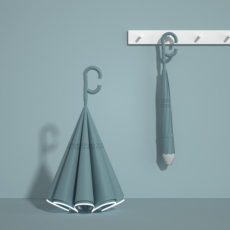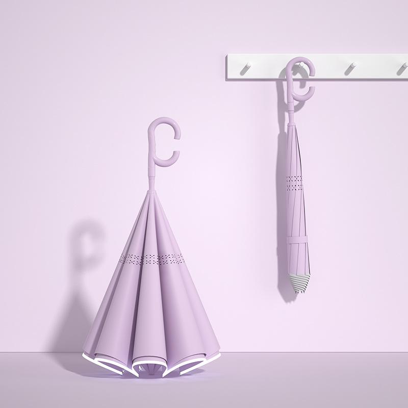 いつでも、どこでも置けます。傘立てや壁がない時に便利。自立させればそのまま自然に乾きます。