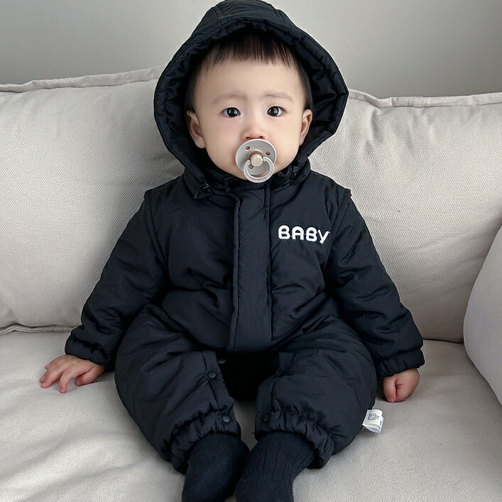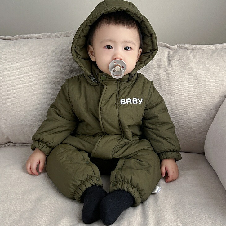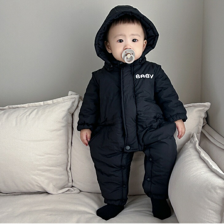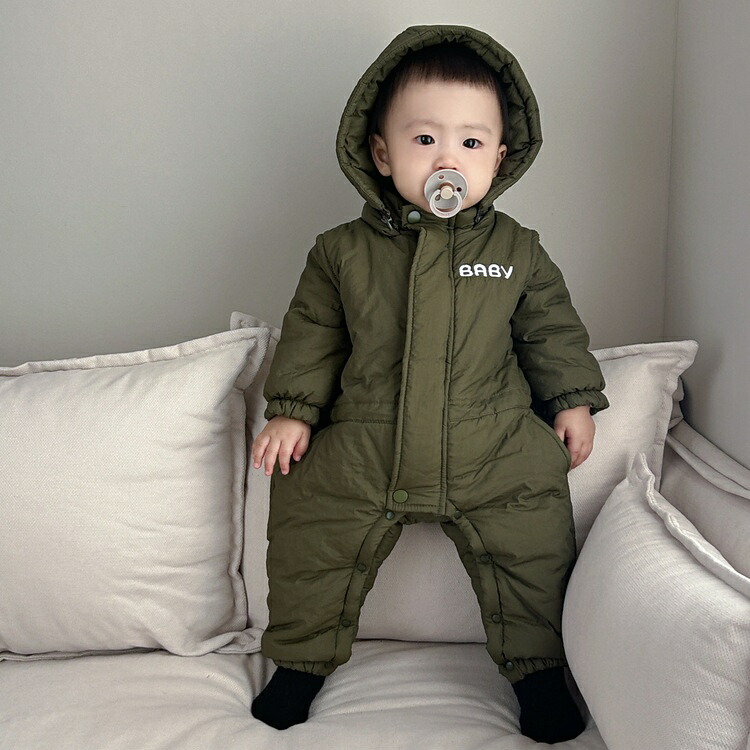 カバーオール 防寒 裏起毛 中綿 男の ベビー ベビー服 ファッション カバーオール ロンパース 通販 ブラック グリーン 66cm 73cm 80cm 90cm 100cm