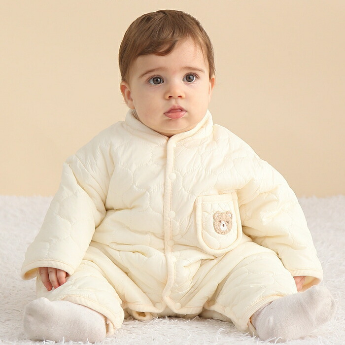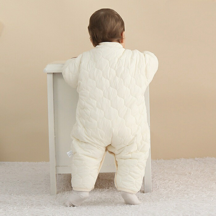 ベビー服 カバーオール 裏起毛 中綿 キッズ ベビー マタニティ 人気 アイボリー グリーン 66cm 73cm 80cm 90cm