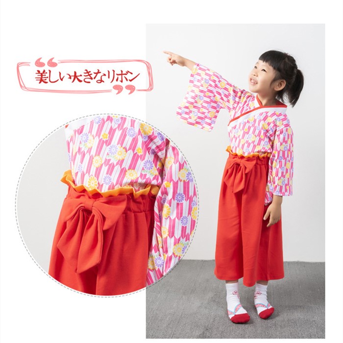 キッズ 袴 袴風 女の子 セットアップ キッズ スーツ カジュアルセットアップ カジュアルパンツセット 割引 90cm 100cm 110cm 120cm 130cm 赤 濃いブルー 黄色