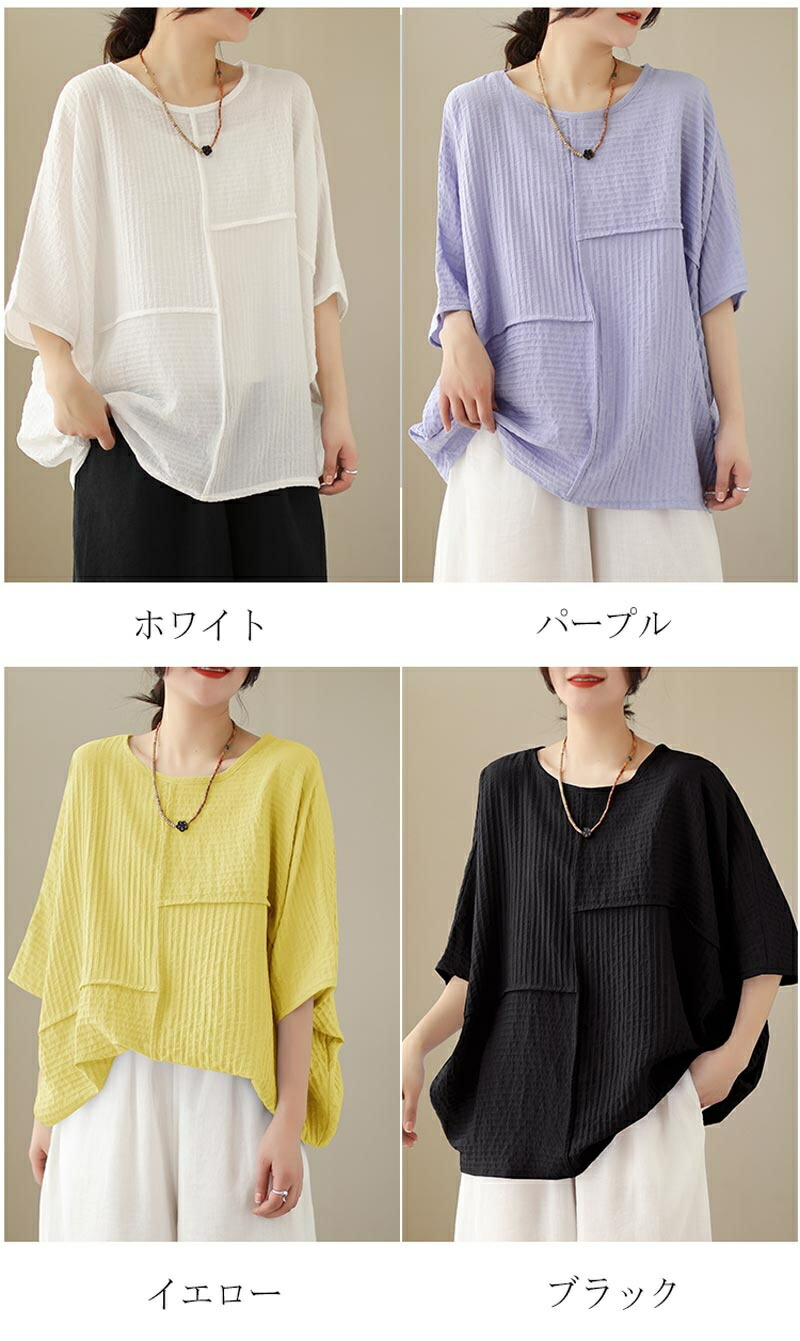 チュニック ドルマンスリーブ レディー チュニック 新作 ホワイト パープル イエロー ブラック L XL 2XL 3XL