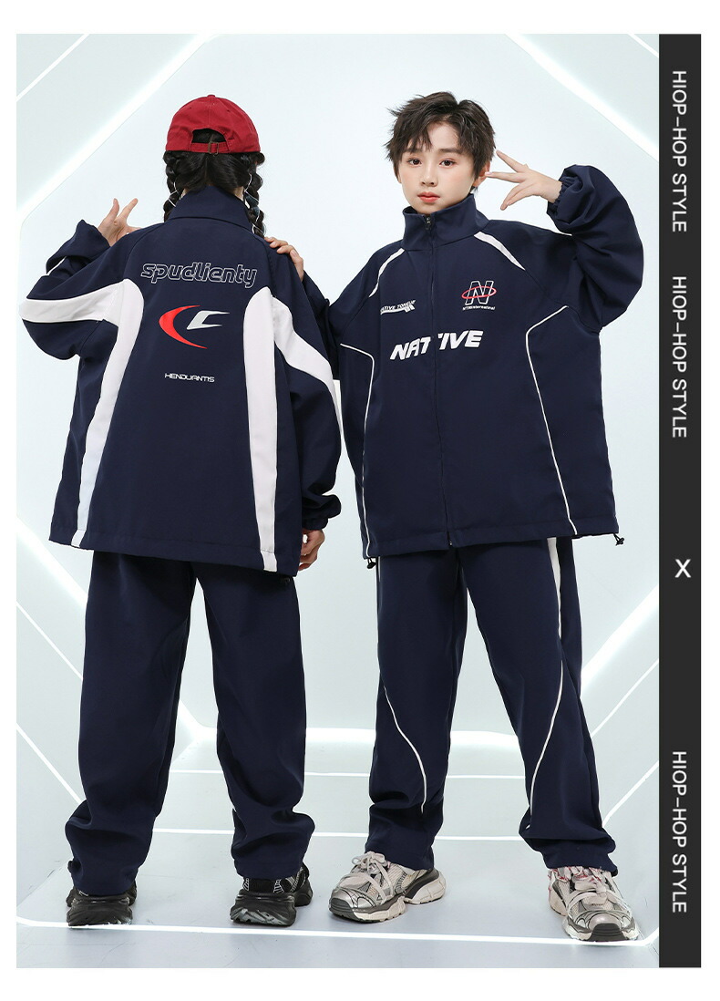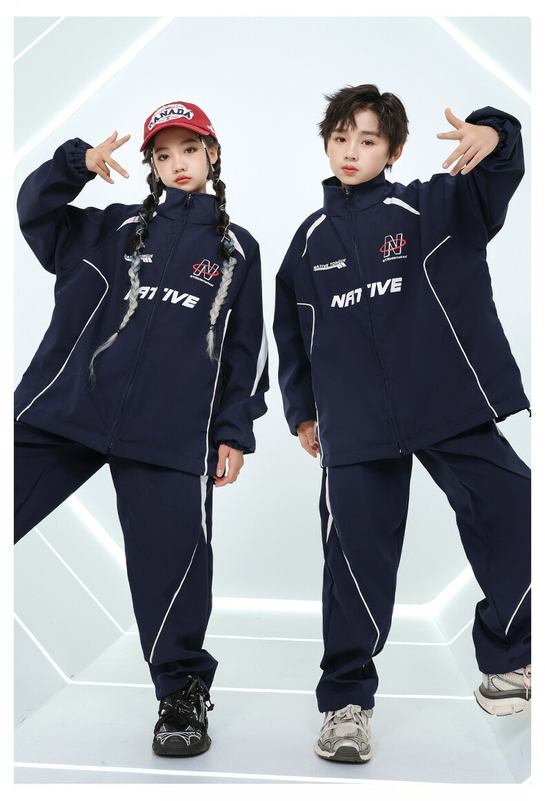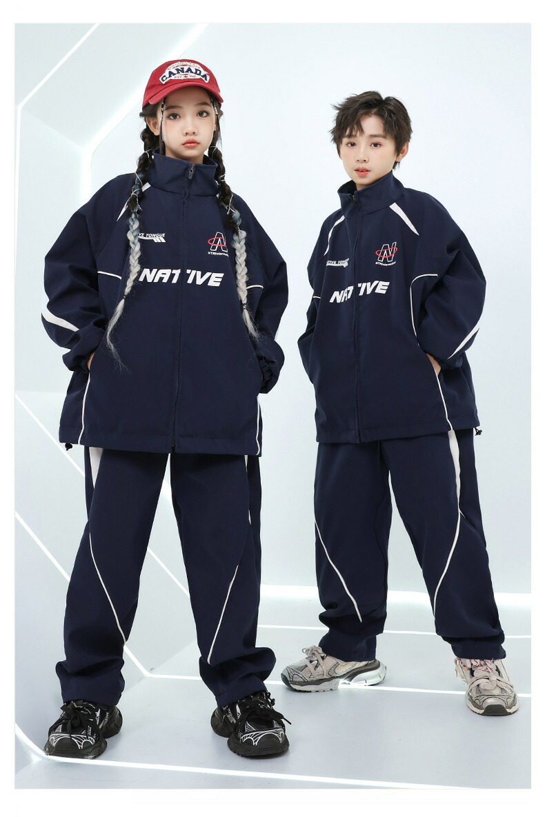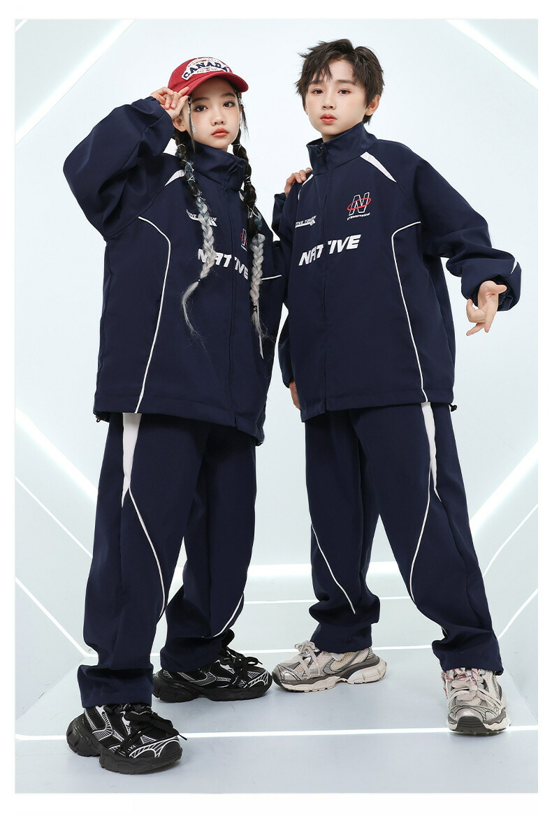 キッズ ダンス衣装 紺 ウィンドブレー キッズ スーツ カジュアルセットアップ カジュアルパンツセット 続々登場 ジャケットのみ パンツのみ ジャケット+パンツ2点 110 120 130 140 150 160 170 180