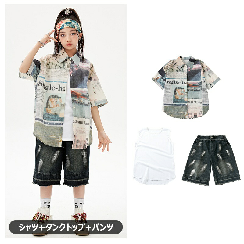 キッズ ダンス衣装 シャツ デニムパン キッズ ベビー マタニティ 続々登場 シャツ パンツ シャツ+パンツ シャツ+タンクトップ+パンツ 110 120 130 140 150 160 170 180