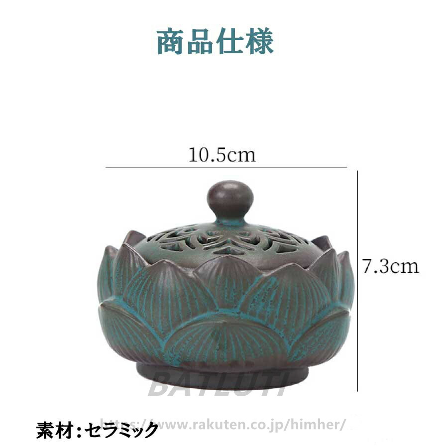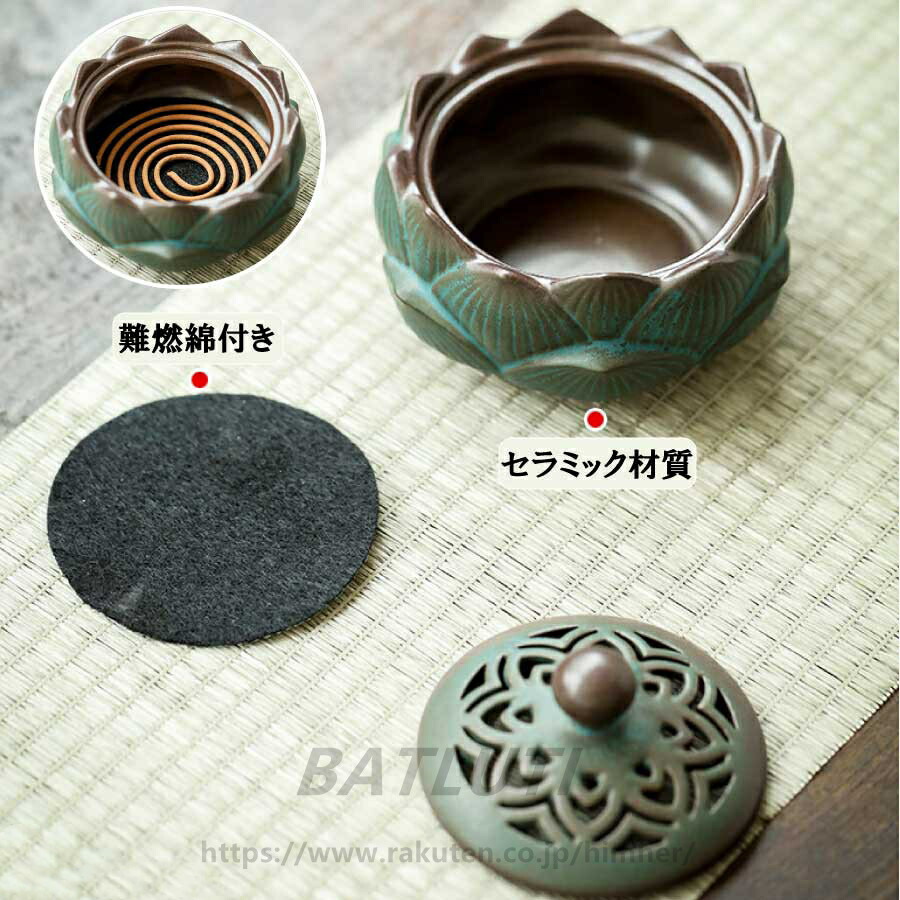 アジアン風 香炉 花 渦巻き線香ホルダー インテリア 蚊取り線香ホルダー 線香入れ 香皿 蓋付き 難燃綿付き 磁器