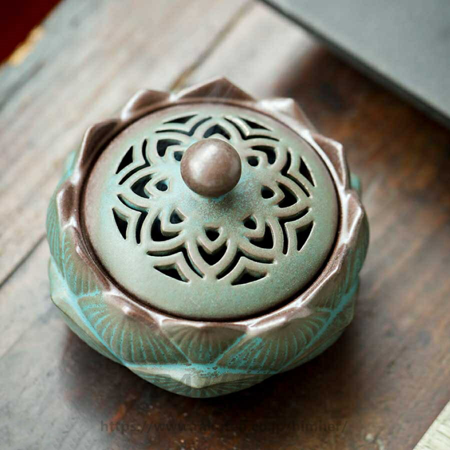 アジアン風 香炉 花 渦巻き線香ホルダ