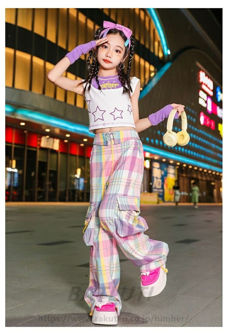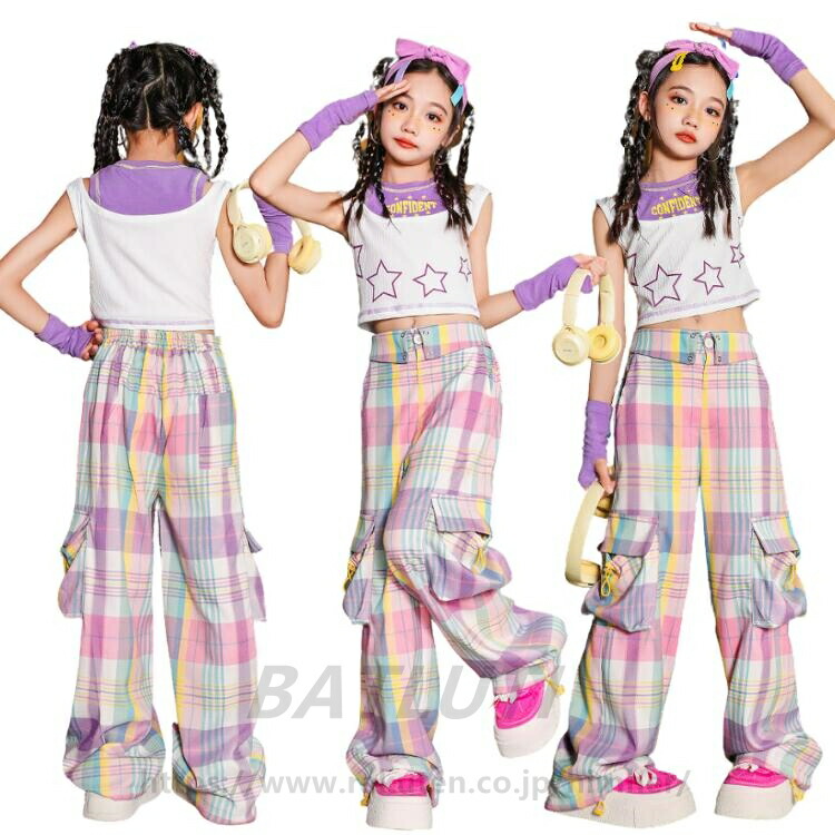 女の子 ダンス衣装 チェック柄 オシャ キッズ スーツ カジュアルセットアップ カジュアルパンツセット 新登場! 3点セット 4点セット トップス+袖カバー パンツ 110 120 130 140 150 160 170 180
