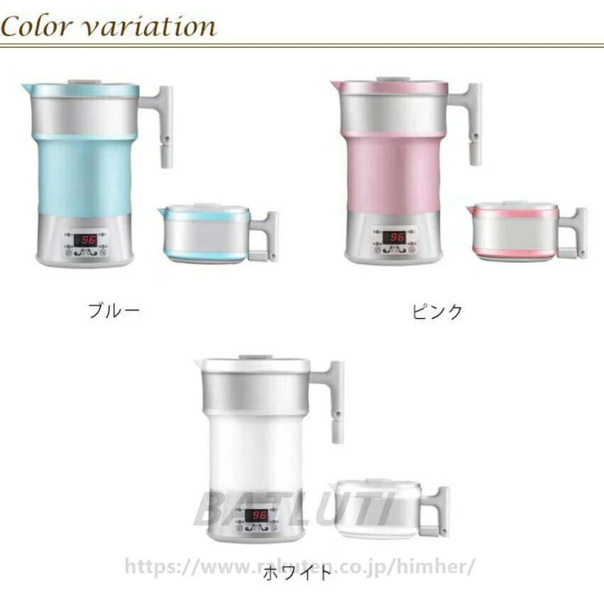 海外でも使える 折りたためるケトル 電 ホワイト ピンク ブルー