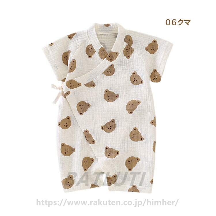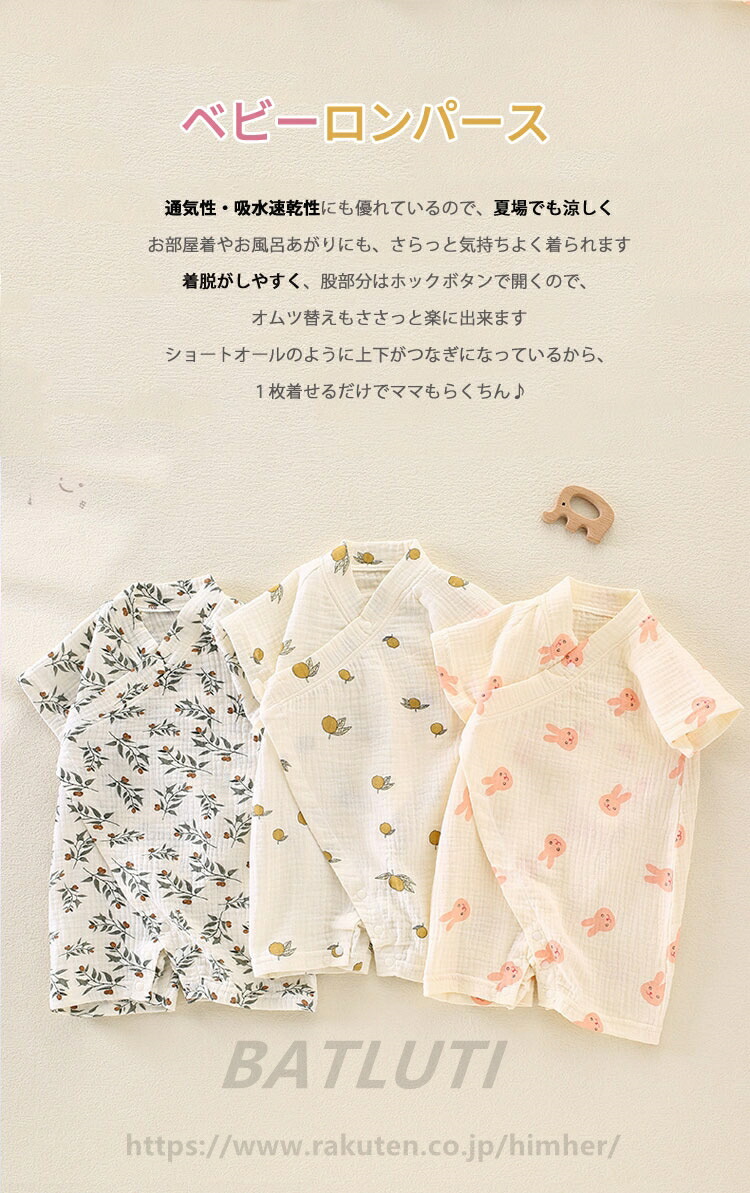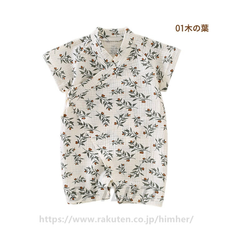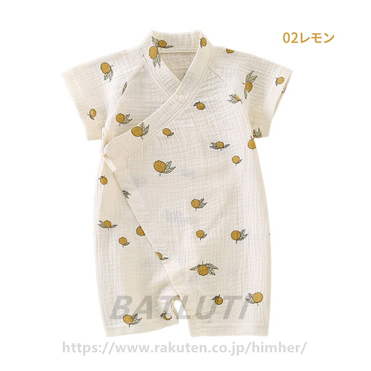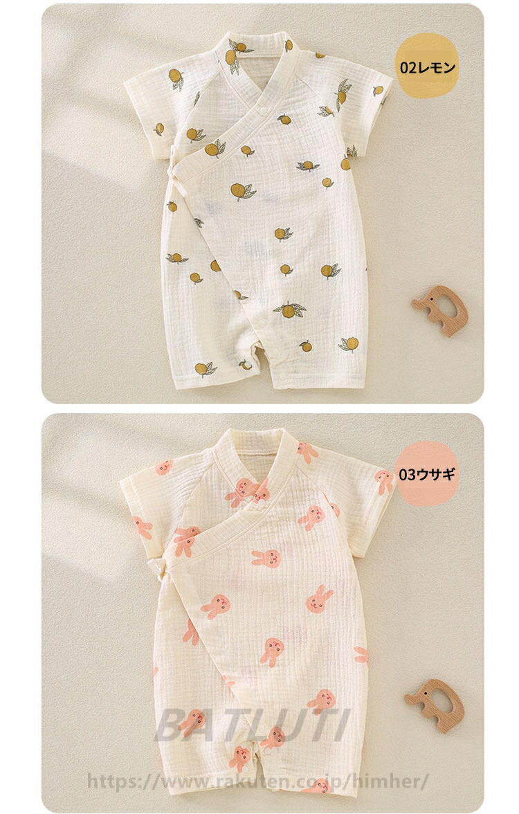 赤ちゃん ショートオール ベビー甚平ロ キッズ ベビー マタニティ 通販 01木の葉 02レモン 03ウサギ 04パンダ 05はな 06クマ 59cm 66cm 73cm 80cm 90cm