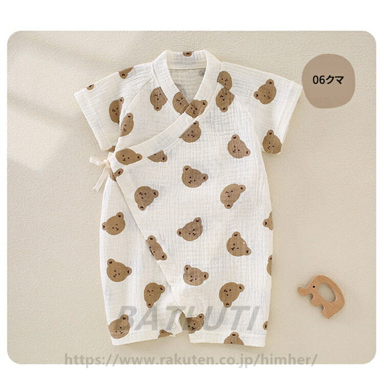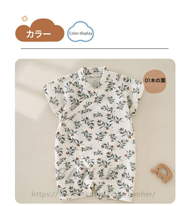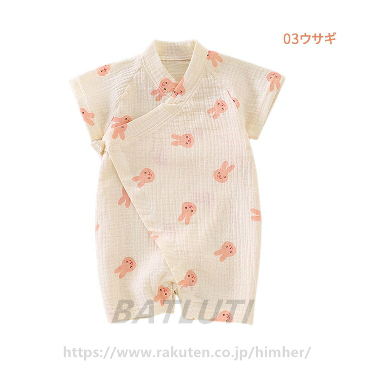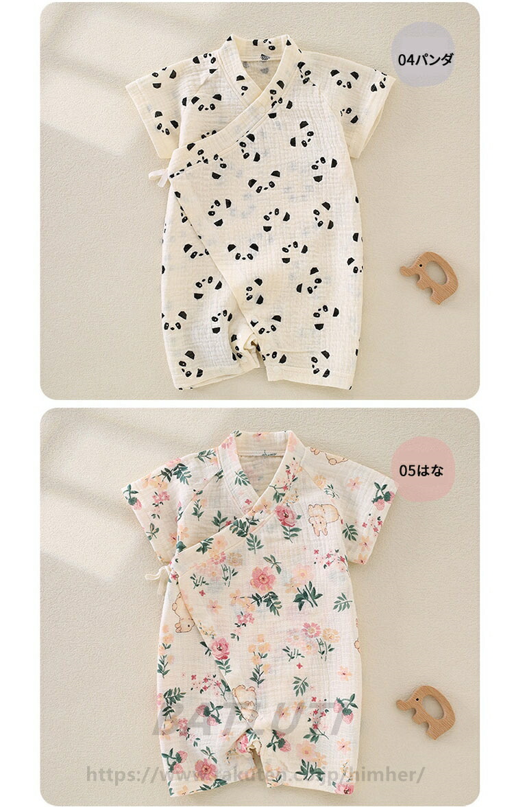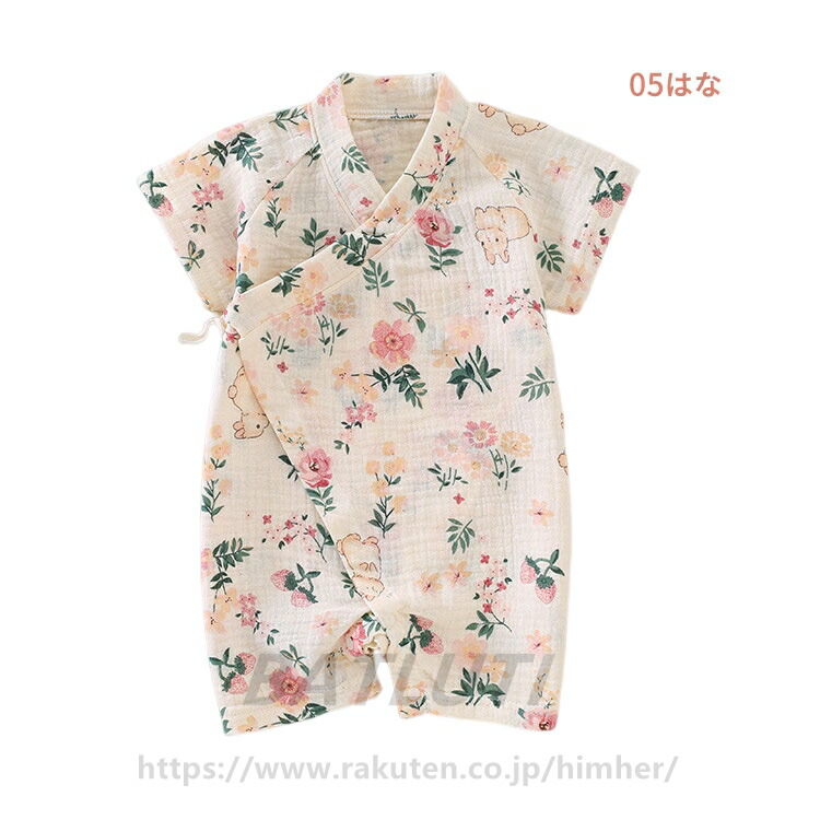 赤ちゃん ショートオール ベビー甚平ロ キッズ ベビー マタニティ 通販 01木の葉 02レモン 03ウサギ 04パンダ 05はな 06クマ 59cm 66cm 73cm 80cm 90cm