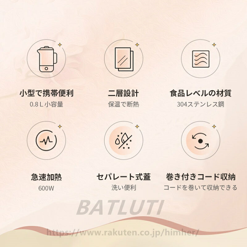 電気ケトル ケトル 電気ポット 800ml 湯沸かし器 湯沸かしポット 304ステンレス鋼 自然保温力 自動電源OFF 空だき防止機能 おしゃれ お祝い 贈り物 3分半で沸騰