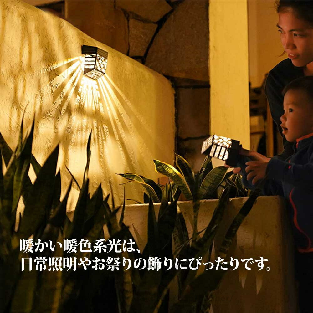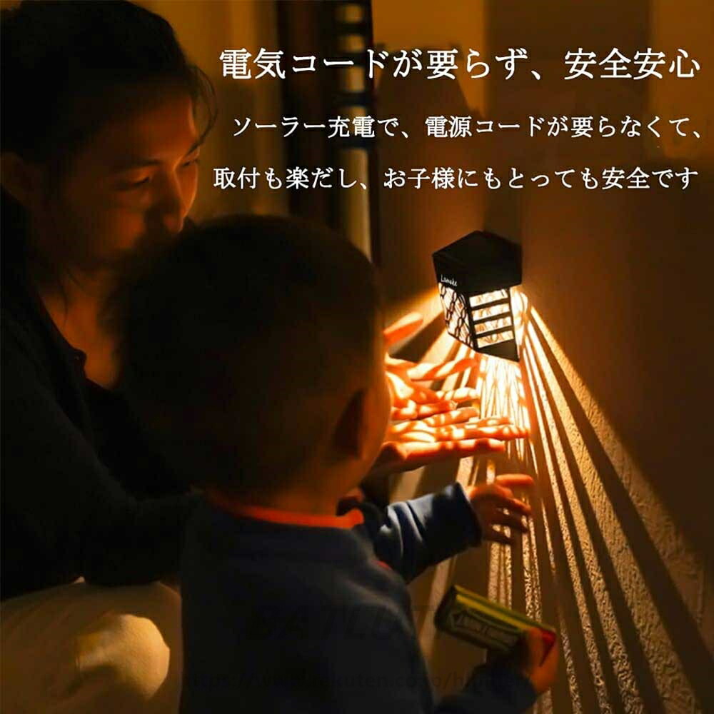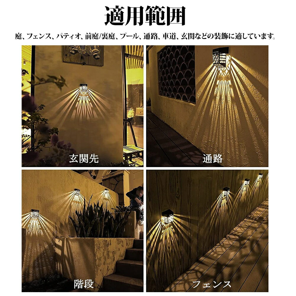 ソーラーウォールデッキライト ソーラーフェンスライト アウトドア LED ガーデン装飾照明 4個 防水 自動ソーラーパティオランプ 玄関 階段 パス プール 裏庭 ウォームホワイト ソーラー充 ポスト