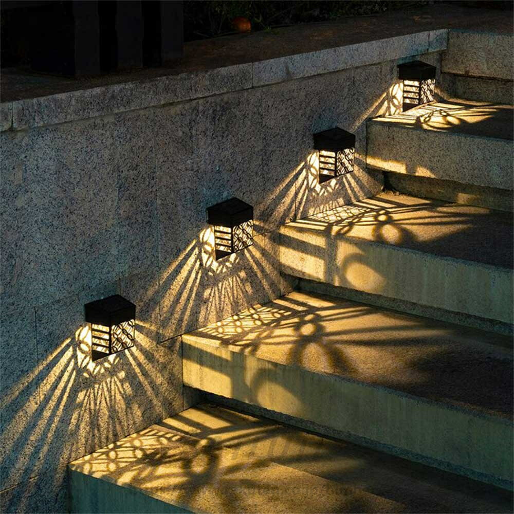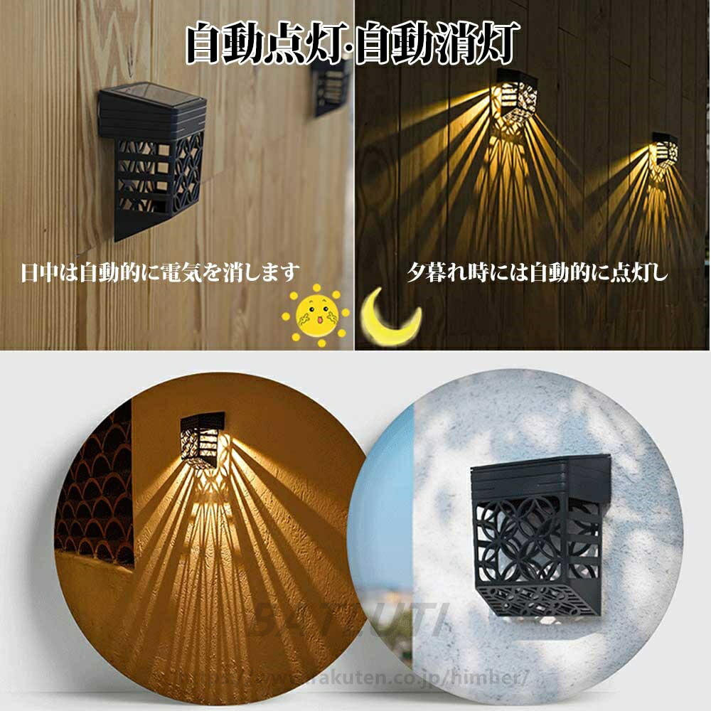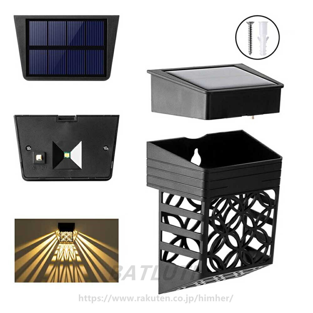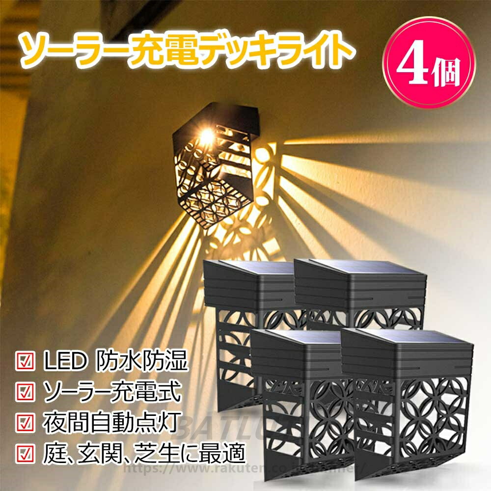 ソーラーウォールデッキライト ソーラーフェンスライト アウトドア LED ガーデン装飾照明 4個 防水 自動ソーラーパティオランプ 玄関 階段 パス プール 裏庭 ウォームホワイト ソーラー充 ポスト