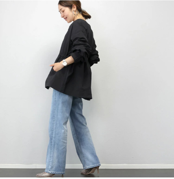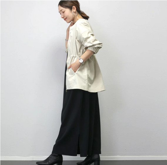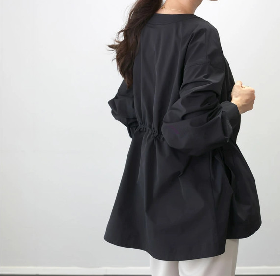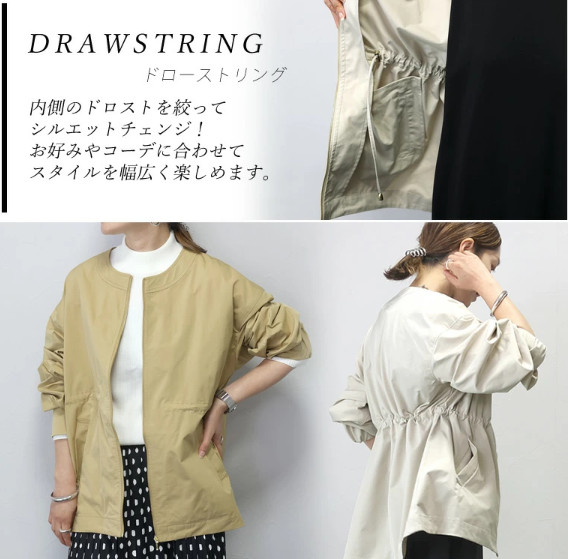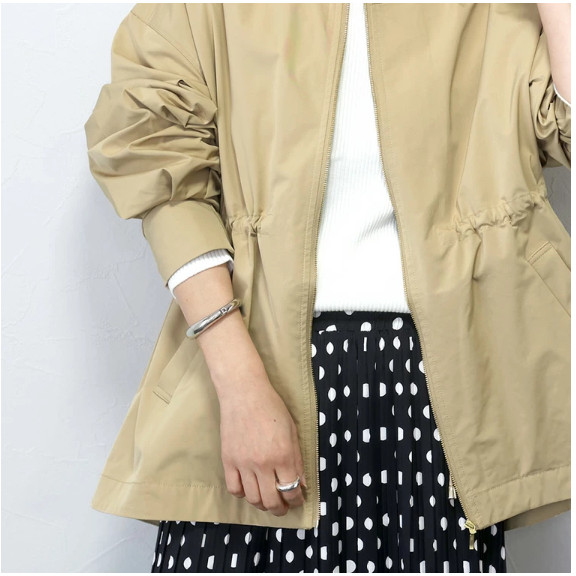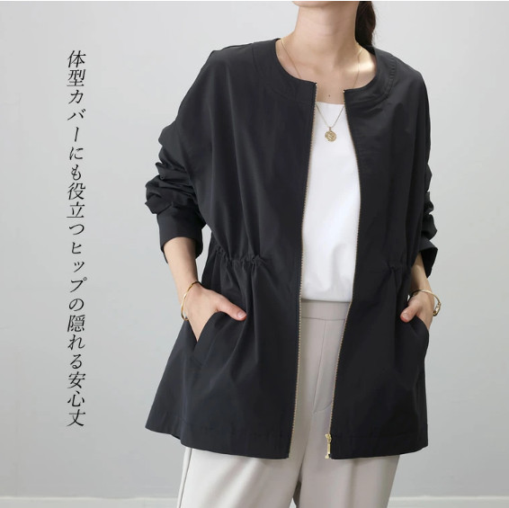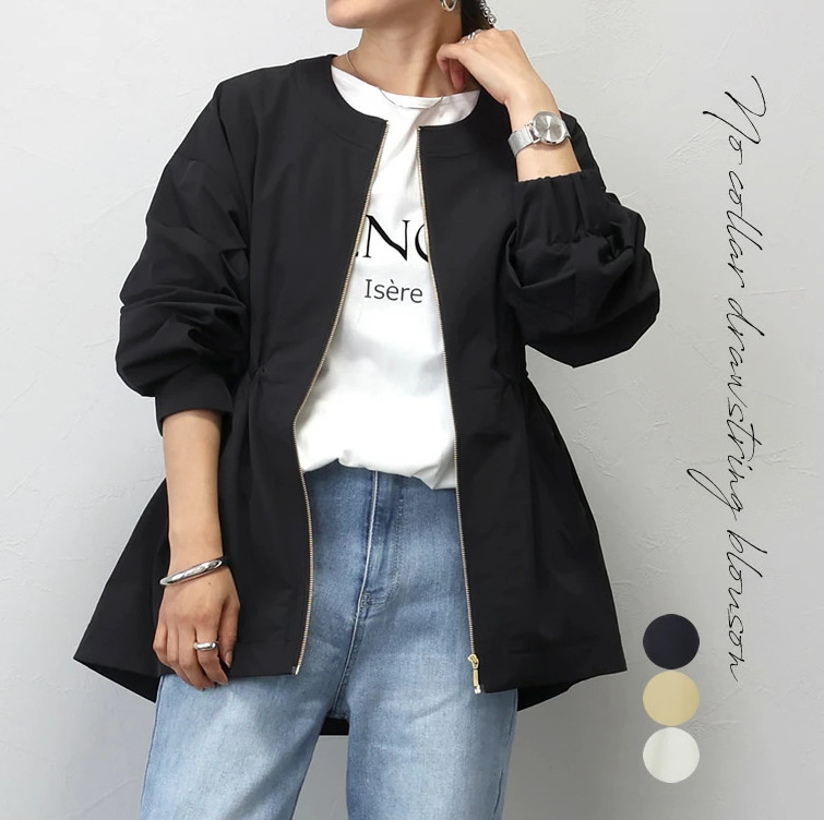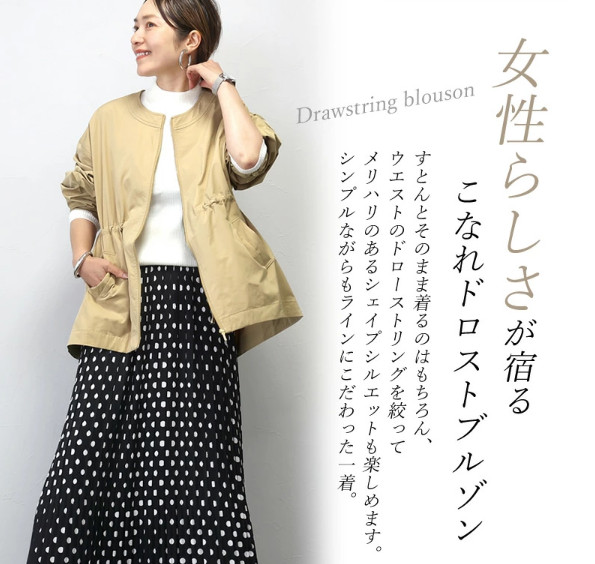 ブルゾンアウター 羽織り ドローストリング マット 長め 立体 ハリ きれいめ 秋 春 大人 30代 40代 レディース