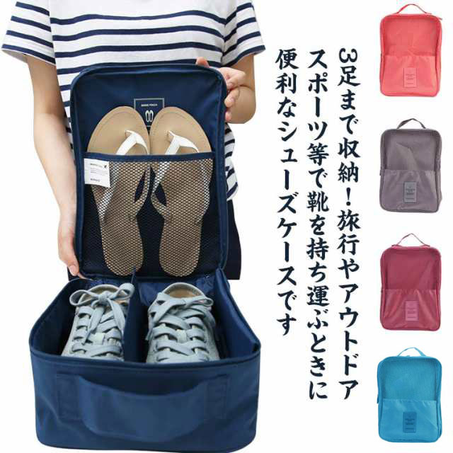 最大3足収納 シューズバッグ プール オレンジ ブルー グレー ネイビー ワインレッド スイカピンク