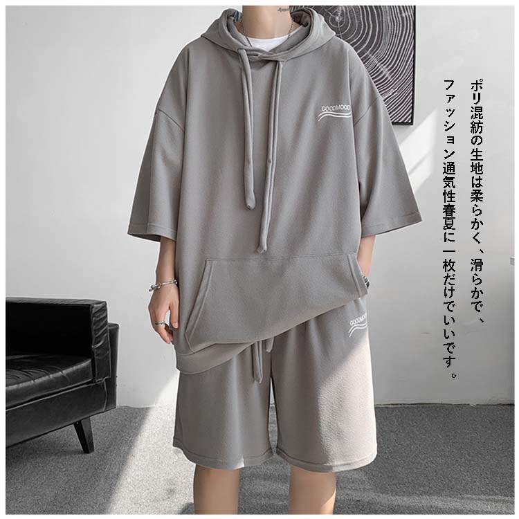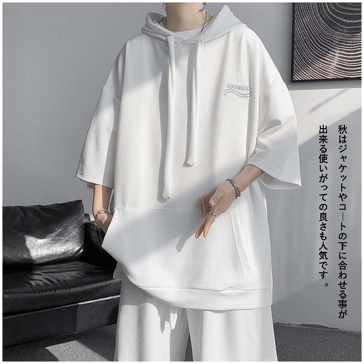 トップス パーカー ジャージ 半袖 フ スポーツ アウトドア 新登場! ブラック上下セット ホワイト上下セット グレー上下セット M L XL 2XL