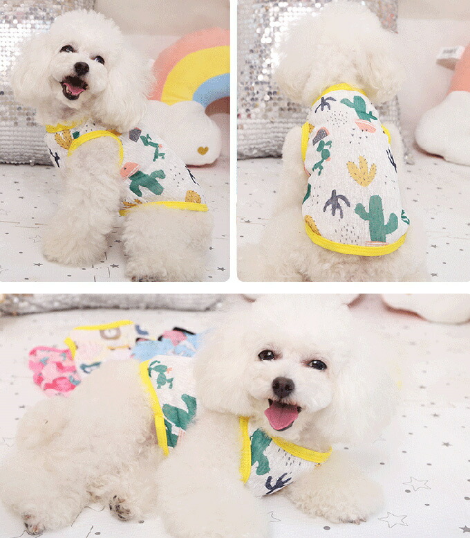 犬 服 麻混 薄手 タンクトップ 通気 ペット ペットグッズ 特集 サボテン柄 熊柄 パイナップル柄 フラミンゴ柄 馬柄 ウサギ柄 XS S M L XL