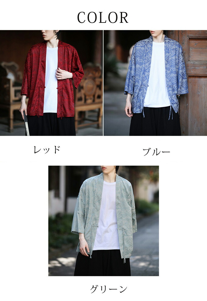 羽織 メンズ 着物 カーディガン 開襟 メンズファッション 続々入荷中 ブルー グリーン レッド M L XL 2XL 3XL 4XL 5XL