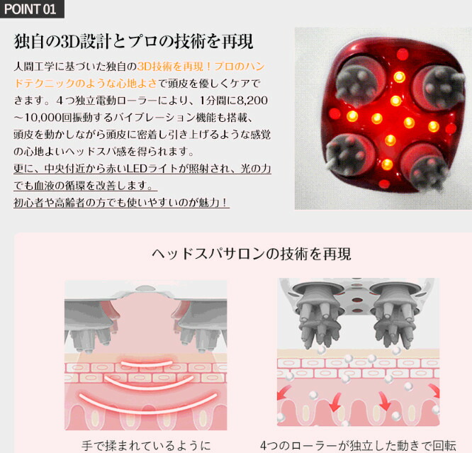 電動頭皮ブラシ 頭皮をつまむように揉ん