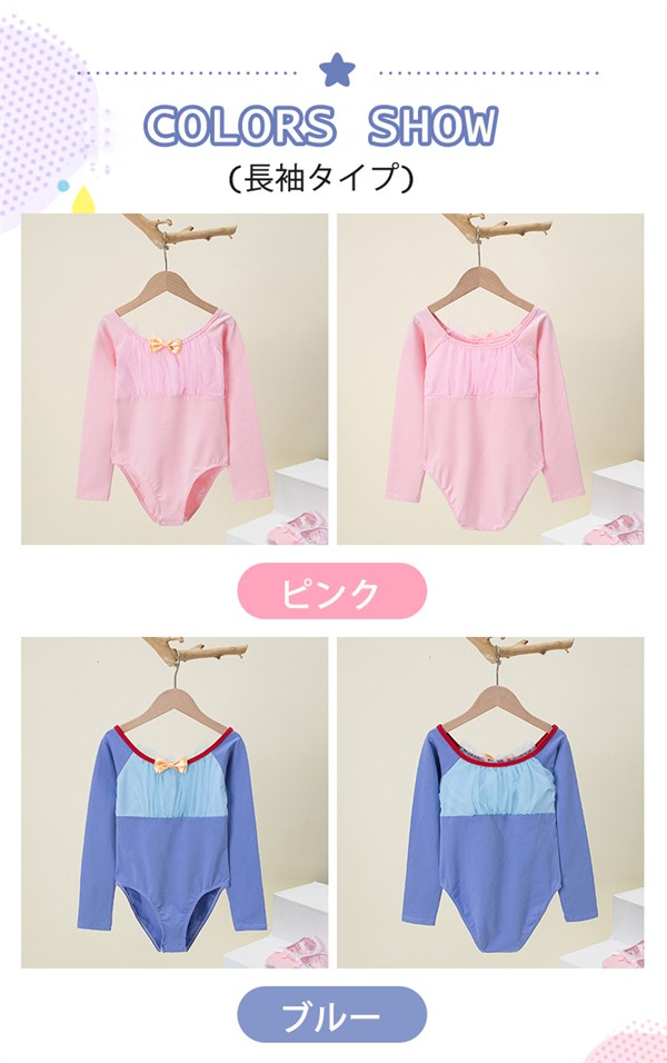 カラー: ブルー(長袖) ピンク(長袖) ピンク(半袖) ブルー(半袖) パープル(半袖)