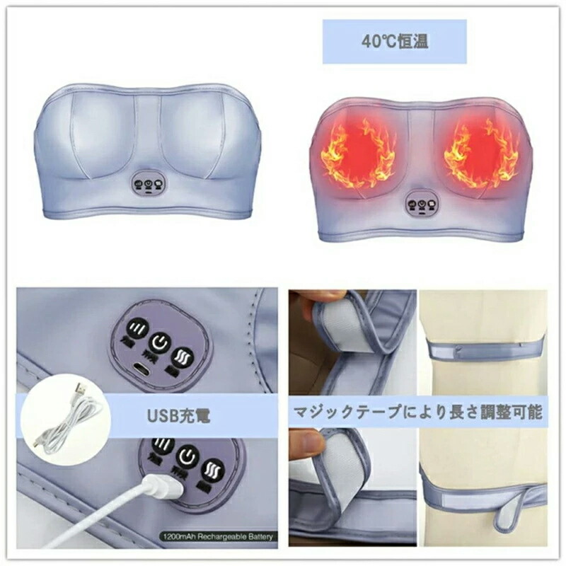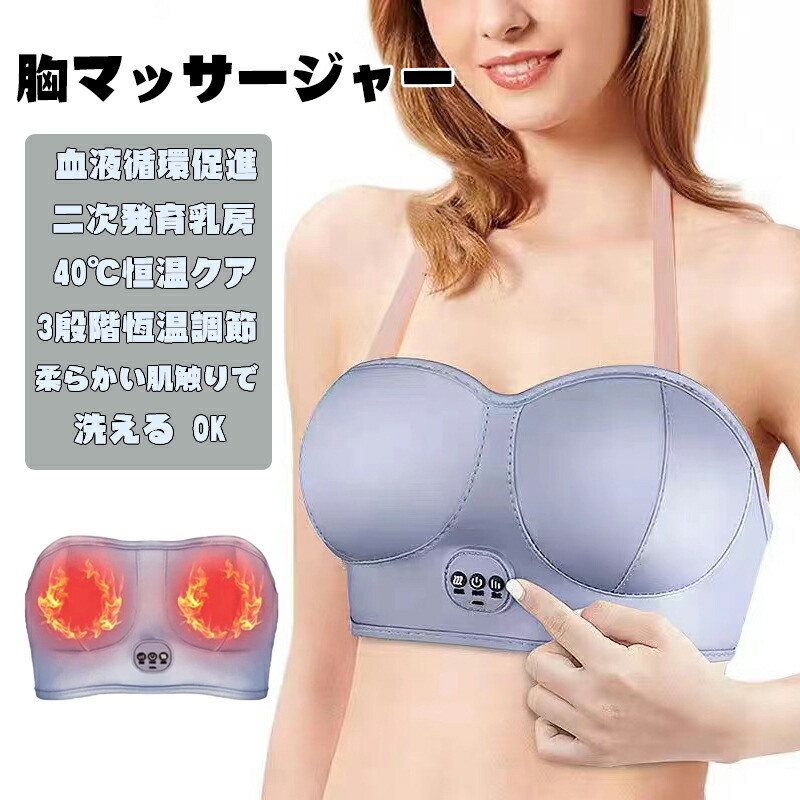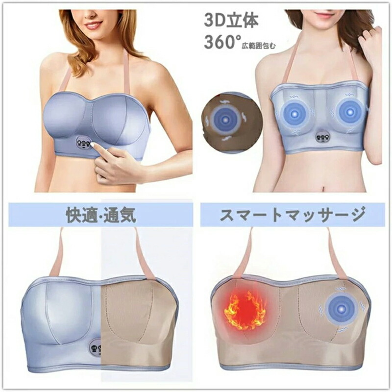 バストアップ 器具 胸マッサージャー バストマッサージャー 胸マッサージ器 女性用 マッサージブラ 胸 胸部 乳房 USB充電 3つモード 5つの強度レベル 女性ホルモン 洗浄可能