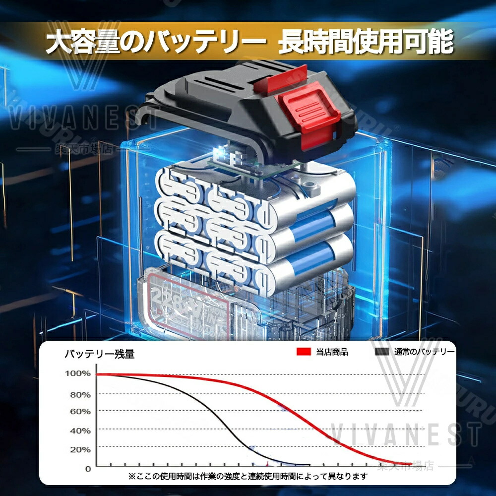 仕様: なし(バッテリーと充電器なし) 1.5ahバッテリー1個-充電器1個 1.5ahバッテリー2個-充電器1個 3.0ahバッテリー1個-充電器1個 3.0ahバッテリー2個-充電器1個 3.0ahバッテリー3個-充電器1個 3.0ahバッテリー4個-充電器1個