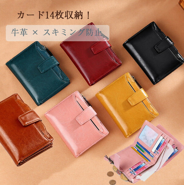 カード14枚収納 本革2つ折り財布 レディース財布 多機能 小銭 カード 写真 お札など収納可能 大人 カワイイ きれいめ 選べる6色