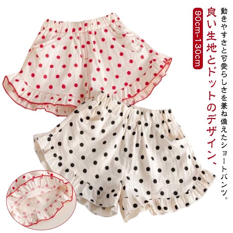 ウエストゴム ショートパンツ ハーフパンツ 薄手 ドット キッズ服 子供 子ども 女の子 夏 おしゃれ 親子 姉妹 シンプル カジュアル 可愛い 通園 通学 ボトムス 90cm 100cm アウトドア