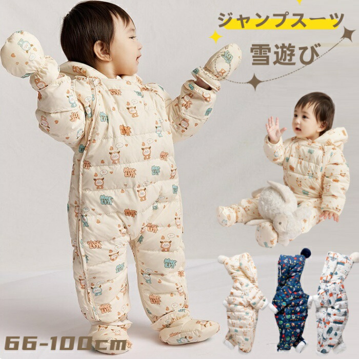 ジャンプスーツ 雪遊び ベビー カバーオール ダウンカバー 男の子 女の子 フード付き 防寒着 防撥水 ロンパース 冬 暖かい 厚手 新生児 長袖 ベビー服 可愛い 出産祝い 百日祝い