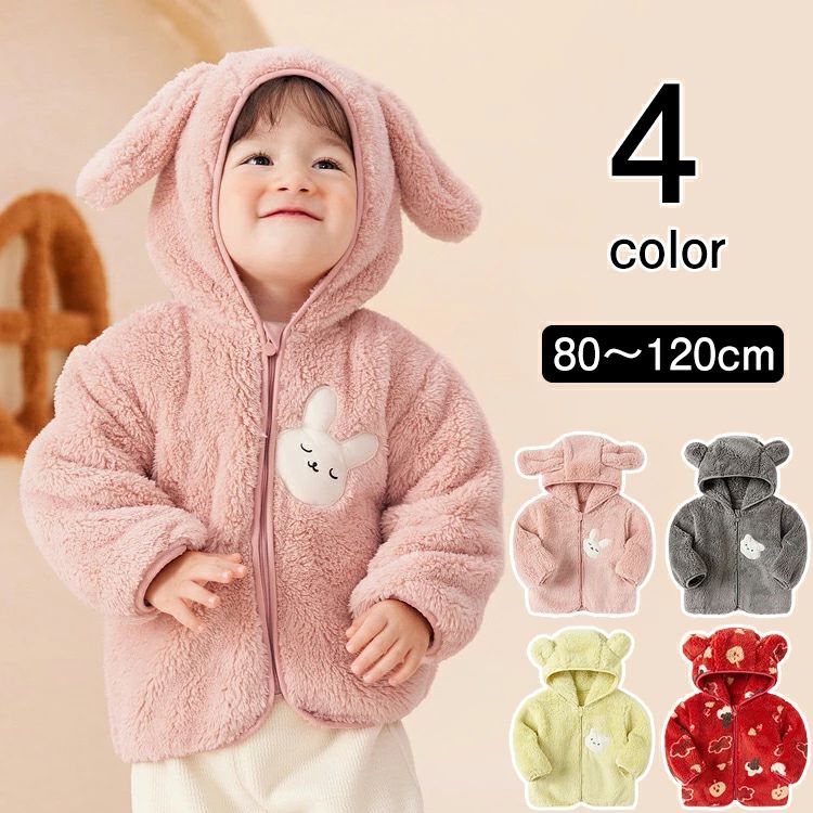 パーカー ボアジャケット 中綿コート 中綿ジャケット 子供服 冬服 防寒コート 子供コート ショート丈 キッズ 女の子 男の子 ジュニア パジャマ 長袖 軽量 フード付き ウサギ柄 くま柄 熊 ウサギ