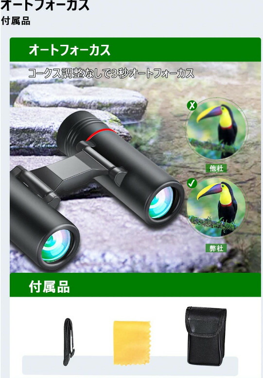 双眼鏡 ライブ用 オートフォーカス 10×22 双眼鏡 高倍率10倍 22口径 高倍率 軽量 酔いにくい オーペア オペラグラス 観劇 スポーツ観戦 登山など適用 ストラップ付き (双眼鏡に対