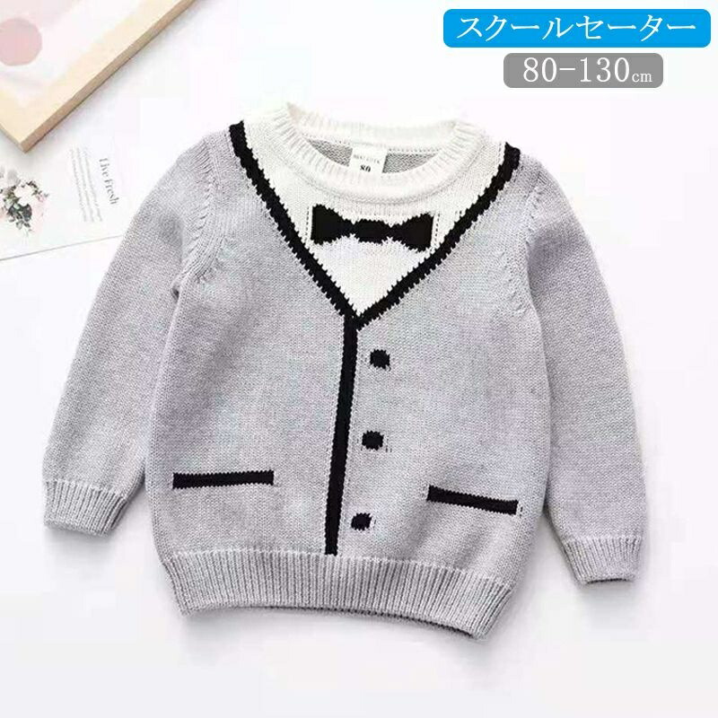 子供 男の子 セーター ニット 切り替え 蝶ネクタイ柄 ネック ベキッズ ベビー マタニティ キッズファッション トップス ニット セーター
