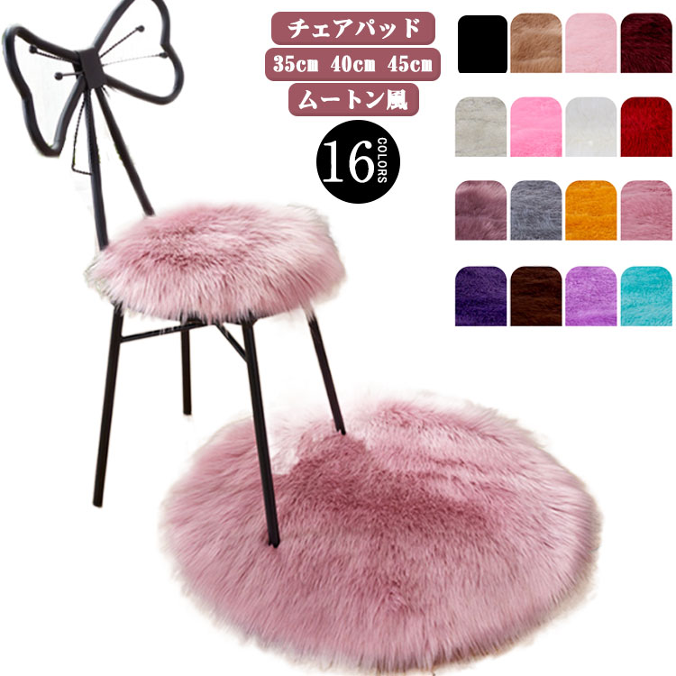 エコファー チェアパッド 座布団 チェアマット 丸形 ラウンド 椅子 スツール ダイニングチェア クッション ふわふわ 滑り止め フェイクファー 北欧 ムートン風 丸型 洗える かわいい インテリア
